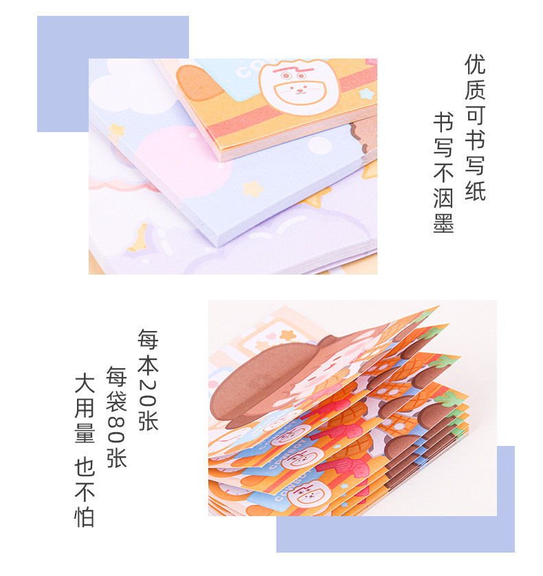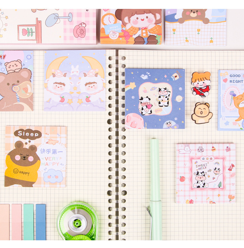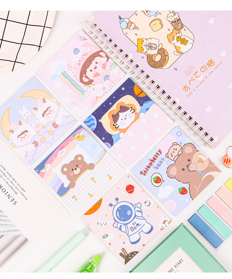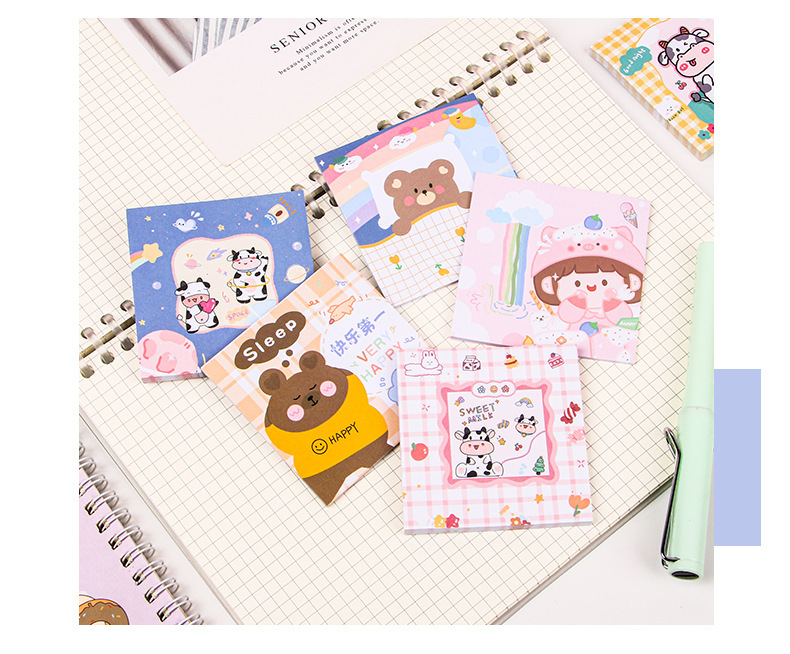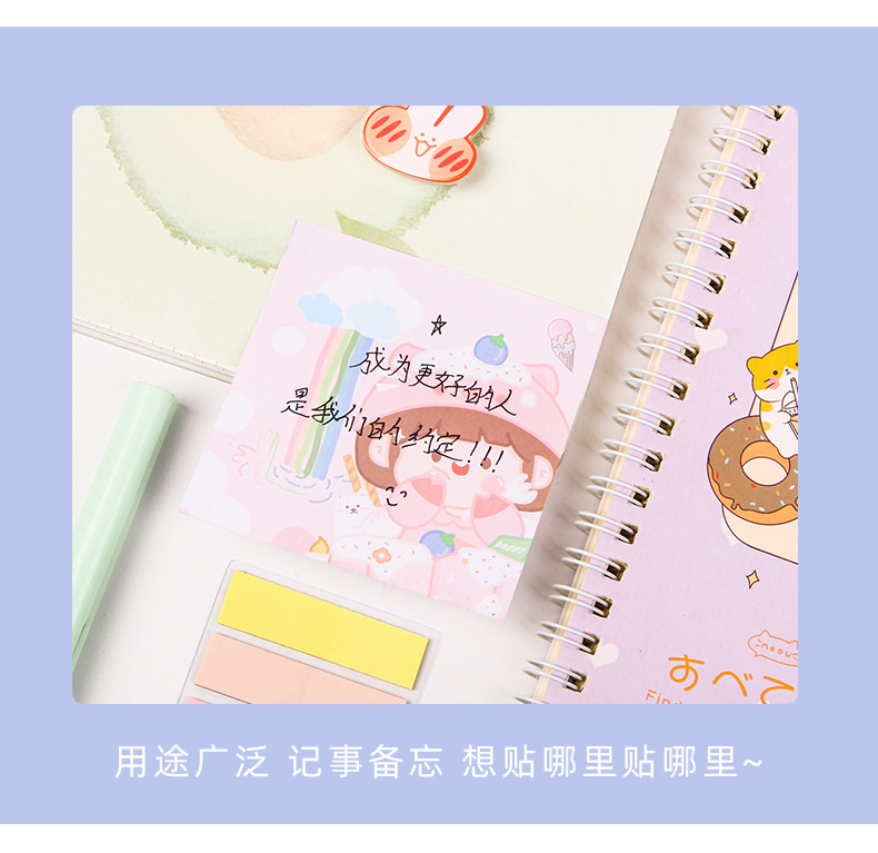 Papelería creativa dibujos animados lindo nota adhesiva color estudiante marca mensaje nota papel desgarrable chica corazón cuaderno