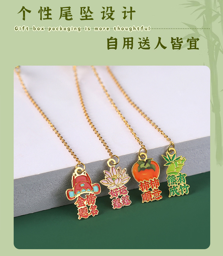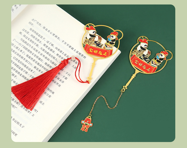 Marcador inspirador de metal creativo al por mayor colgante de dibujos animados para niños Guofeng pequeño regalo para estudiantes marcador de lectura carpeta de la página del libro