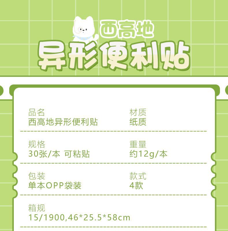 Nuevo papel de nota adhesiva de West Highland de forma especial de dibujos animados lindo perrito N notas adhesivas de mensaje al por mayor
