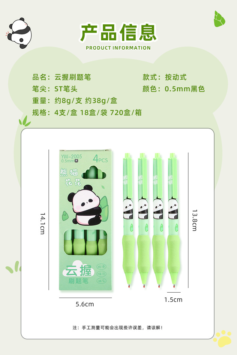 Panda creativo agarra la nube pulsable lápiz neutro de alto valor de caricatura de gran capacidad ST cabeza 0.5 secado rápido lápiz negro