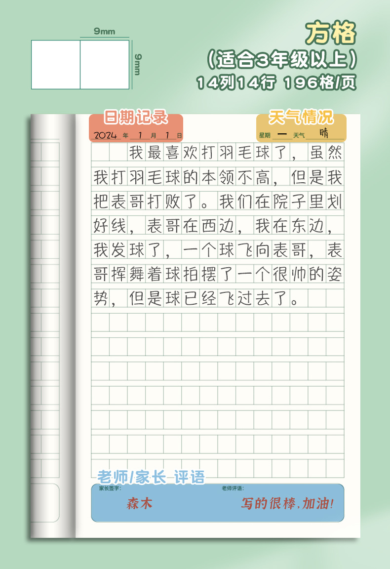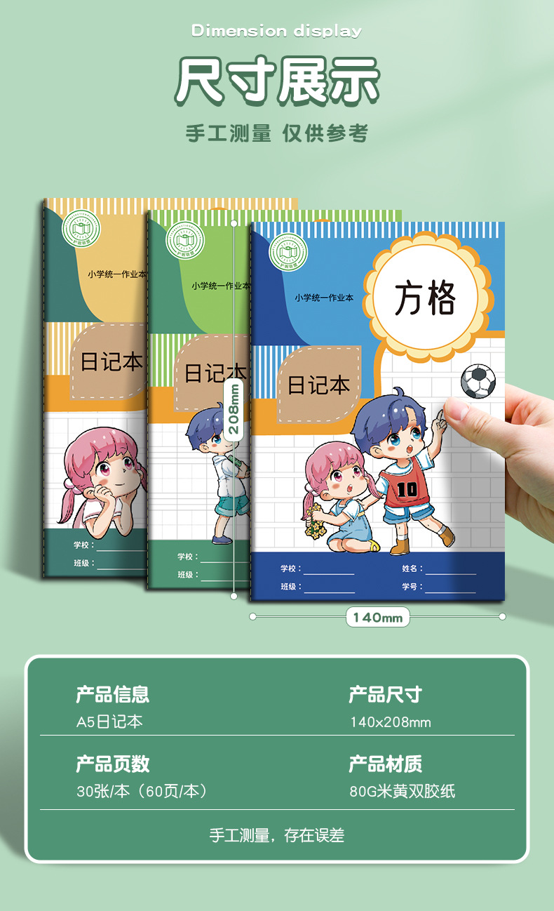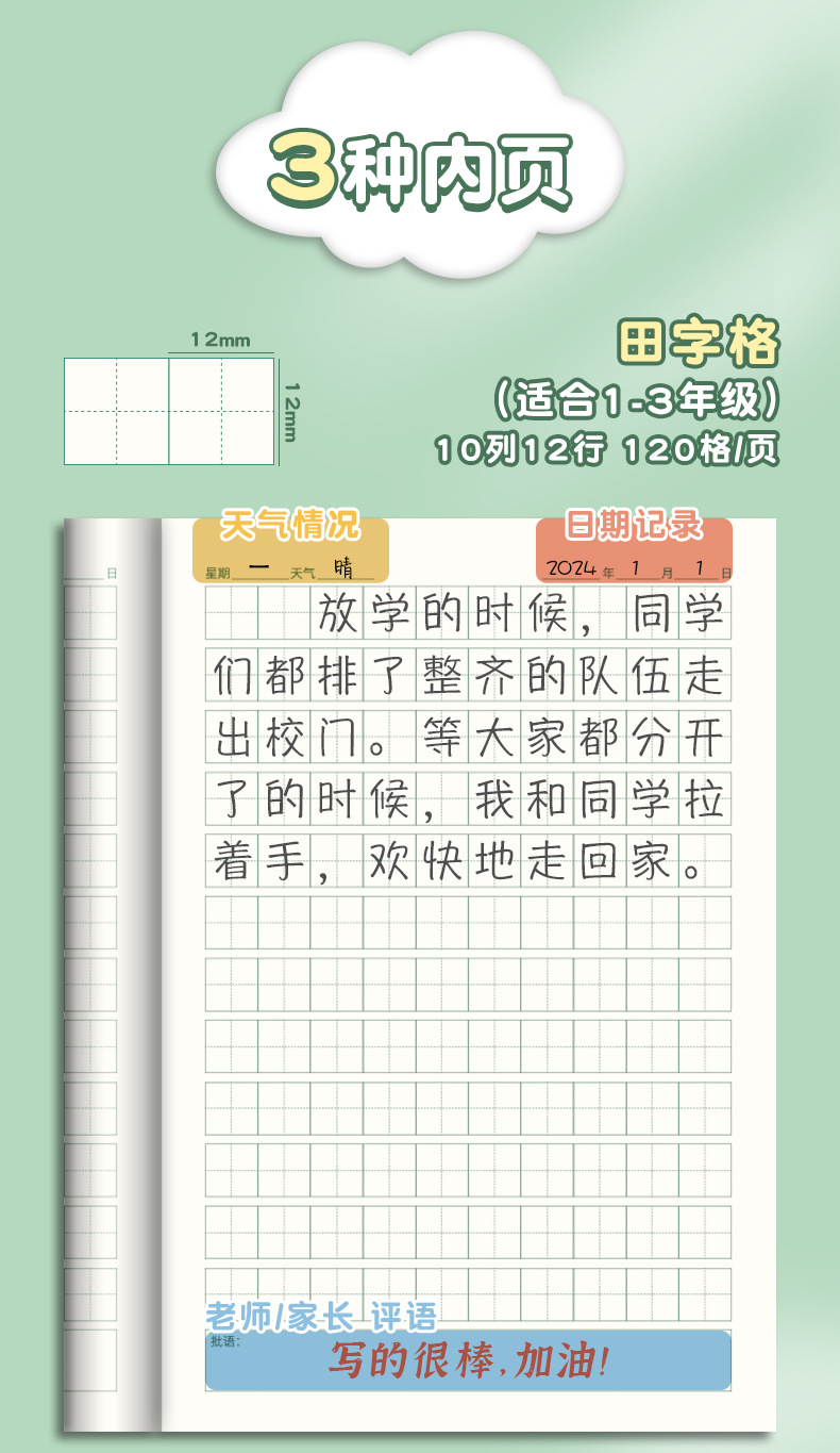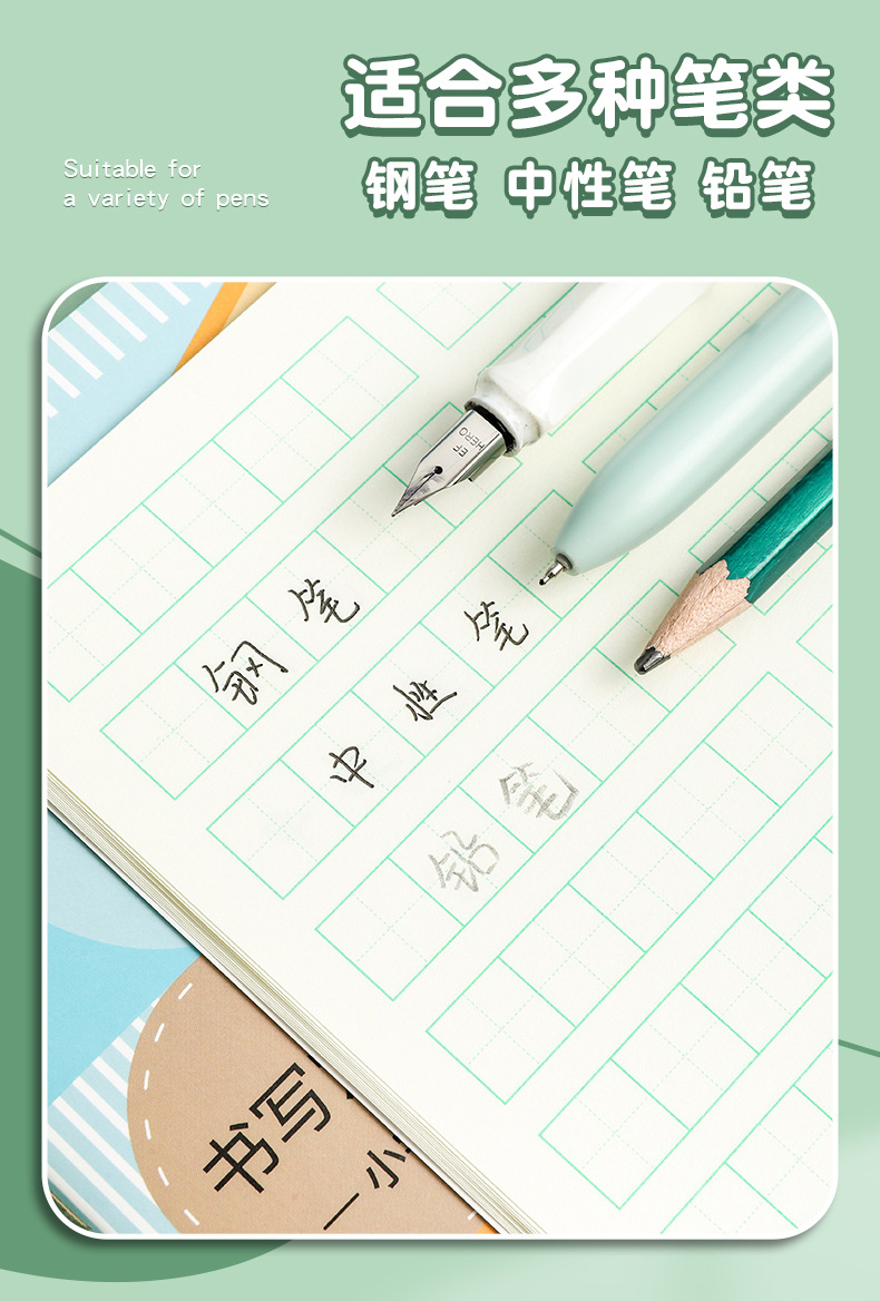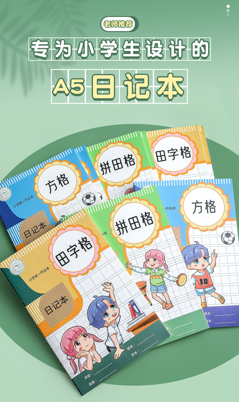 Creative a5 Libro de dictado para estudiantes de primaria Libro de diario al por mayor para niños Tianzi Libro de tareas en inglés Cuaderno a cuadros