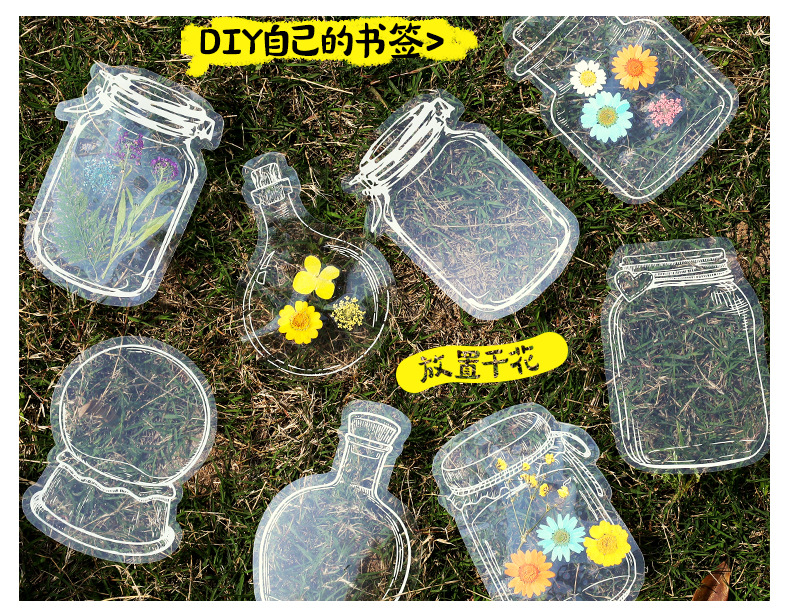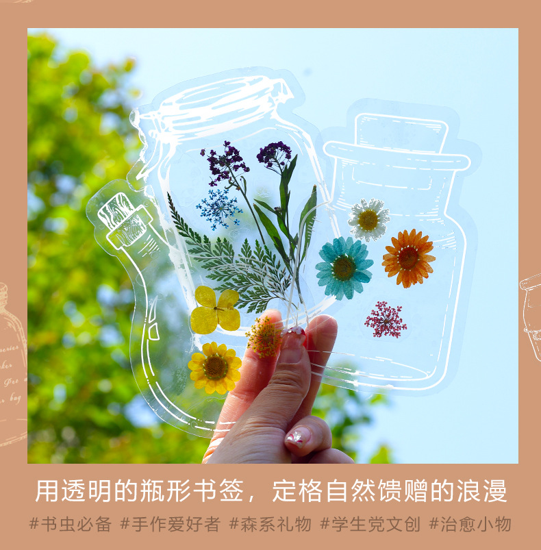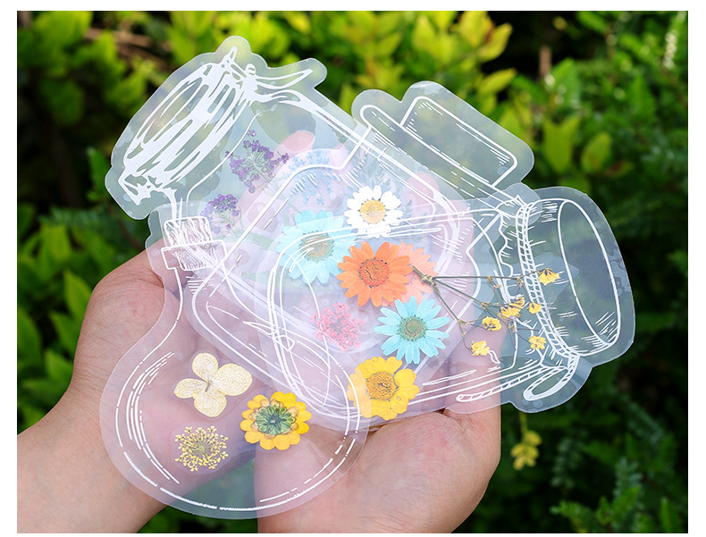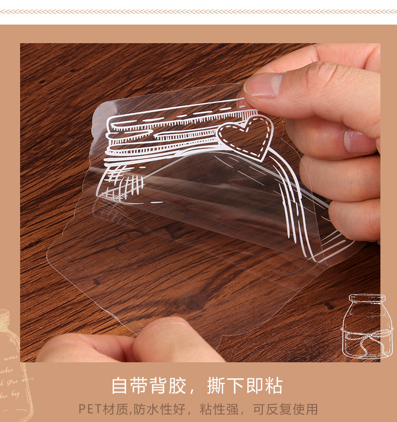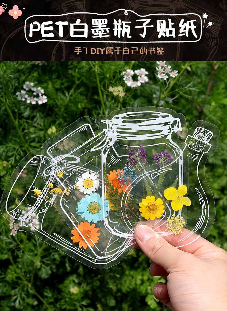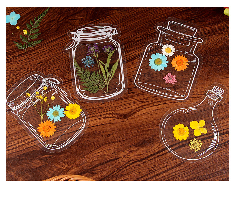 Bolso de papel adhesivo transparente PET creativo para estudiantes de primaria, botella de bricolaje hecha a mano, flor seca, etiqueta engomada, marcador, etiqueta decorativa al por mayor