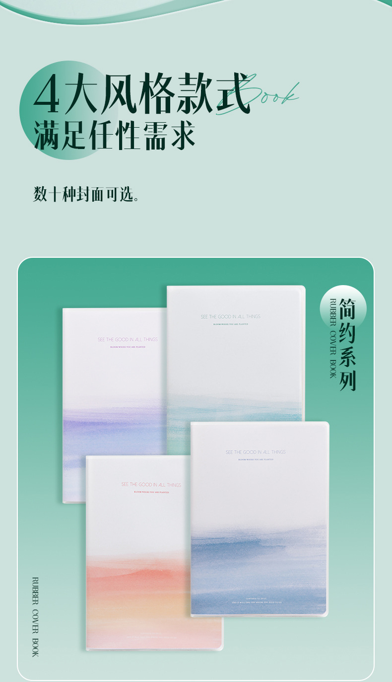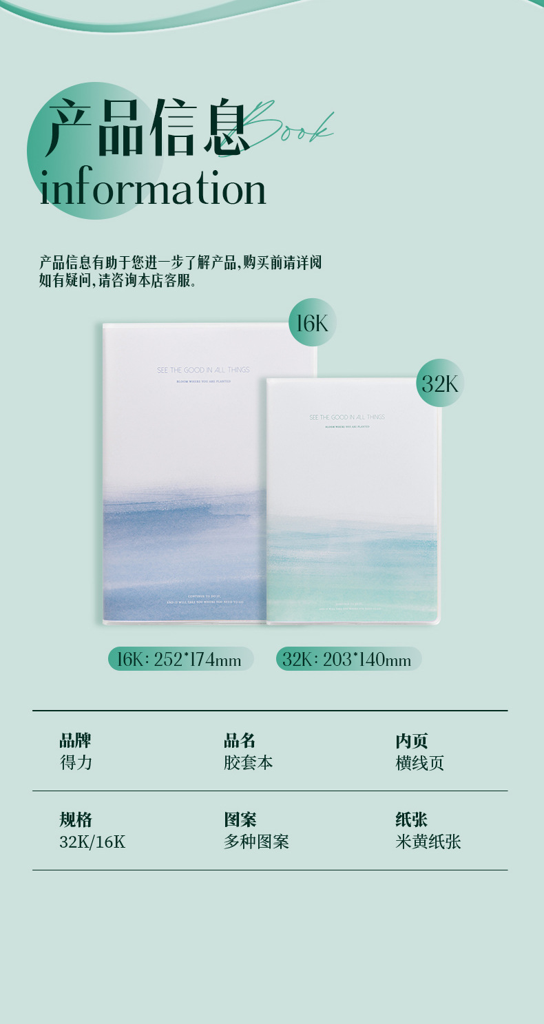 Cuaderno Deli, funda de plástico engrosada, aula fresca y simple, cuaderno literario 32K, diario, 4 paquetes