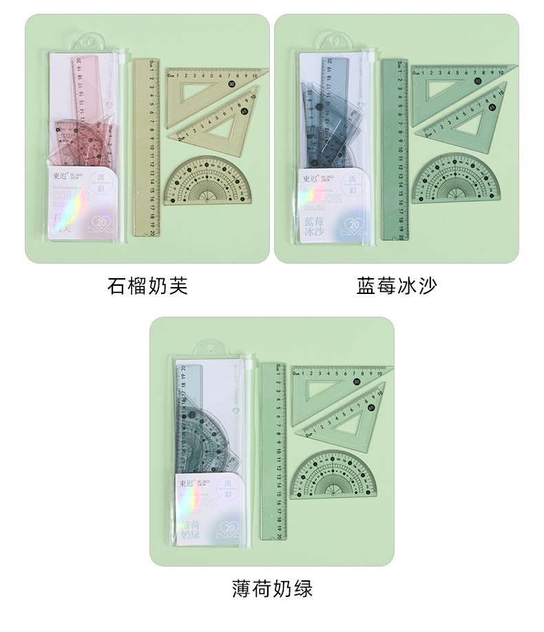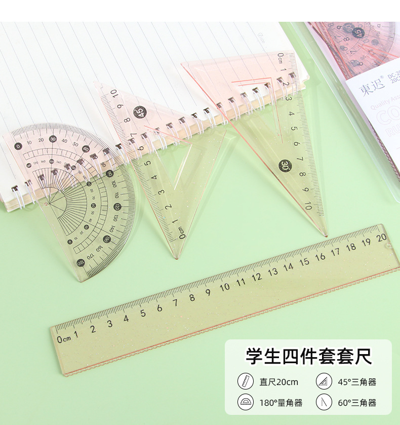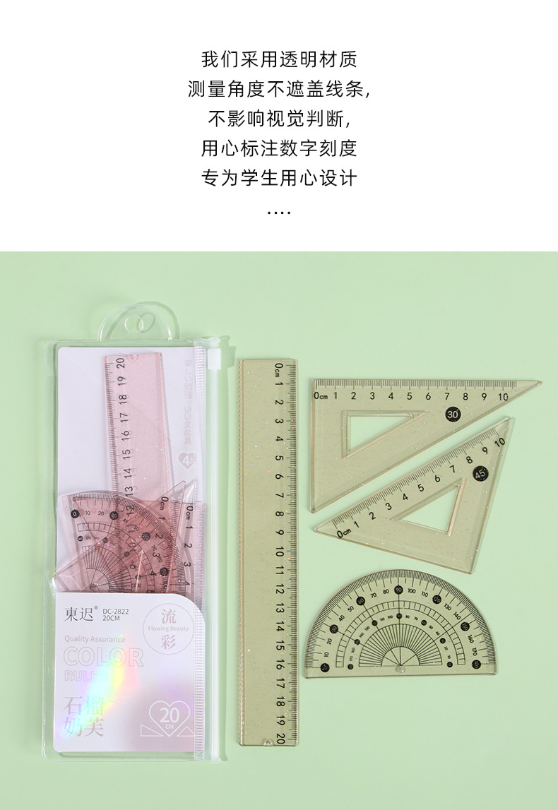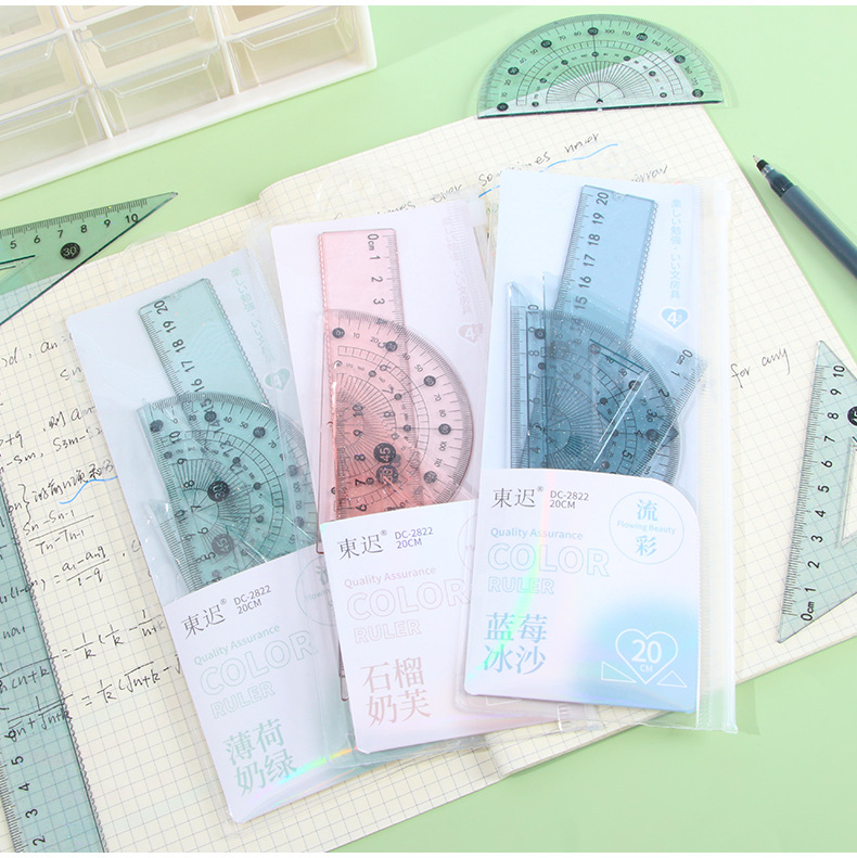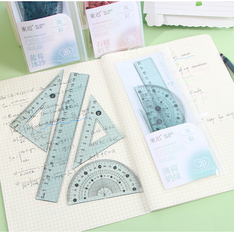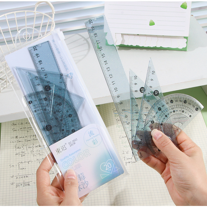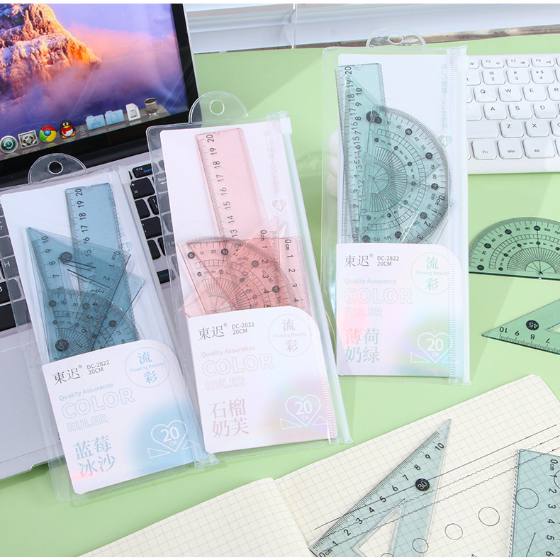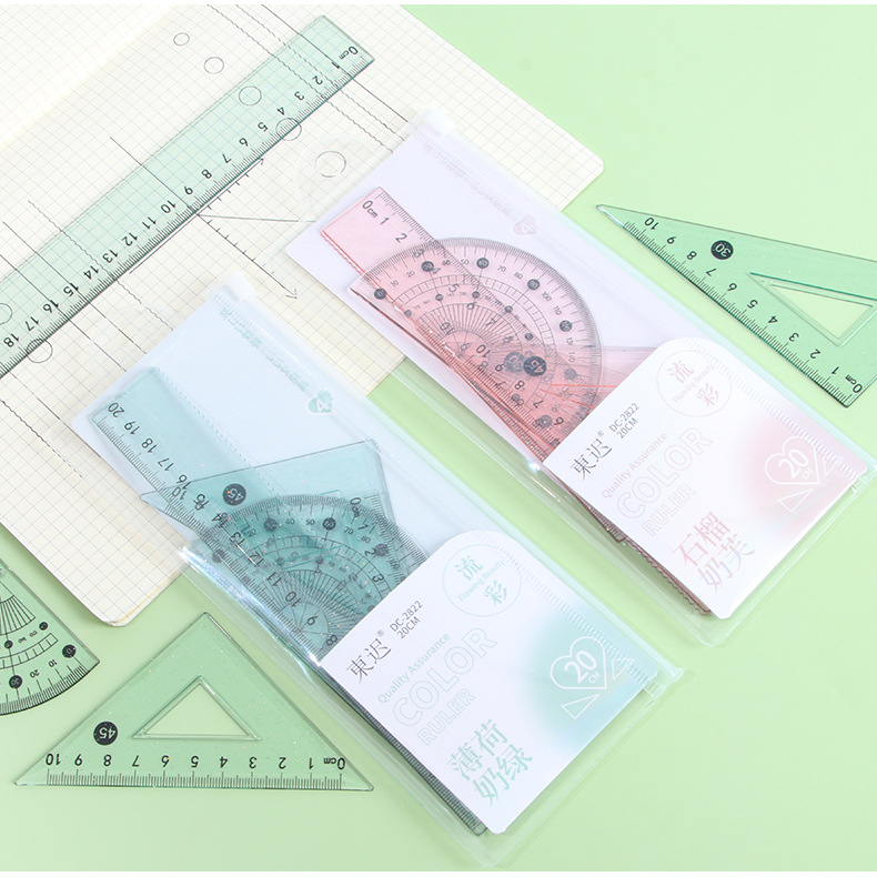 Juego de cuatro piezas de regla de flujo creativo, regla de alto valor 20cm, regla especial para estudiantes de escuela primaria, papelería triangular al por mayor