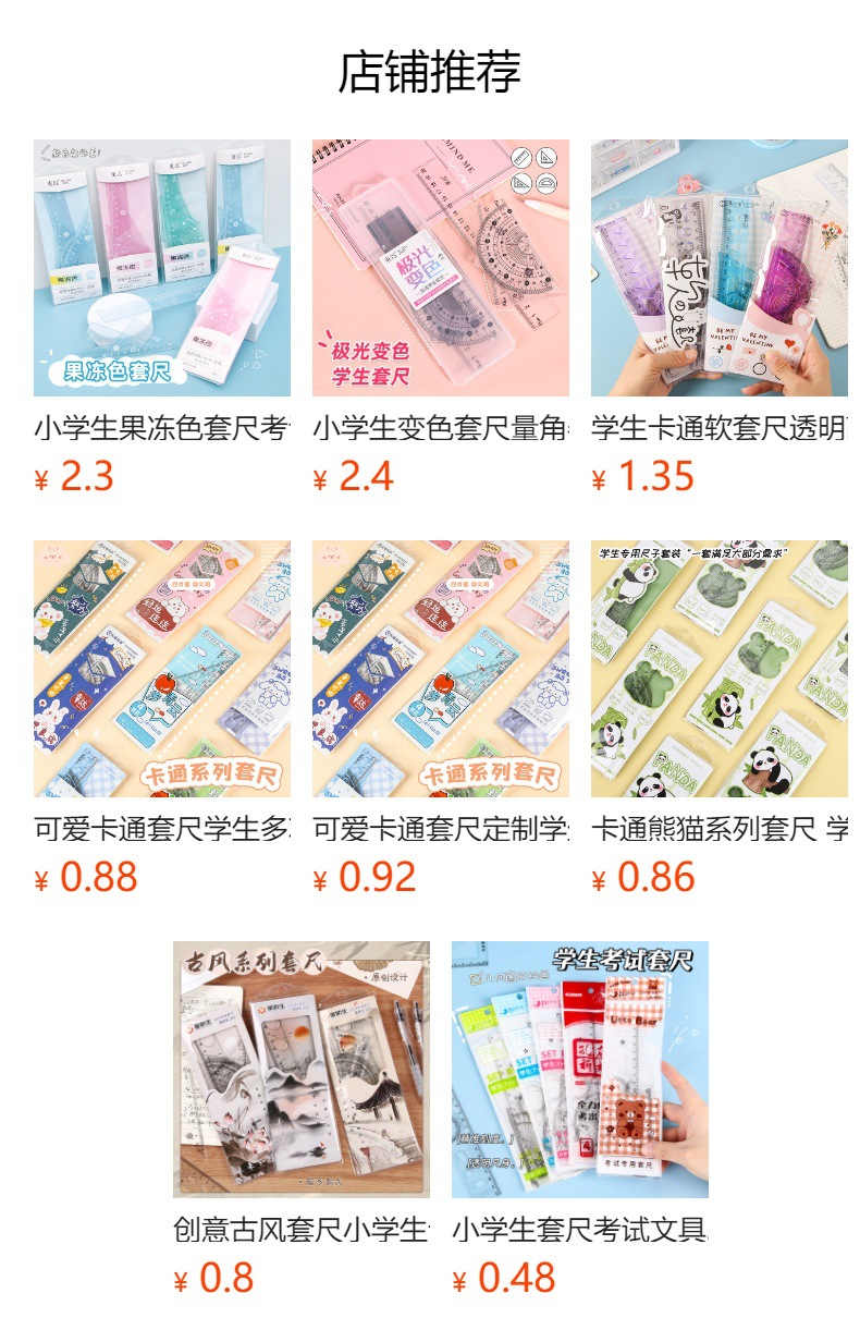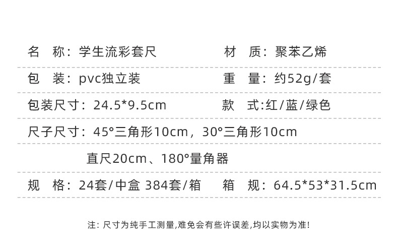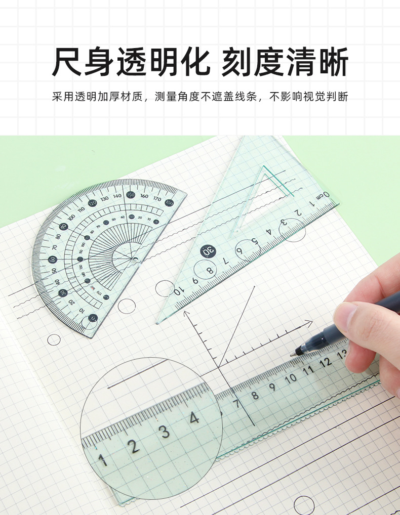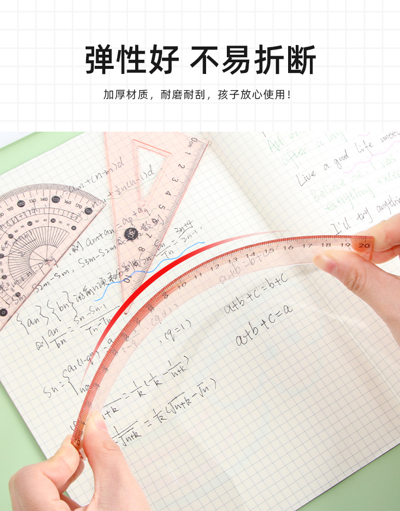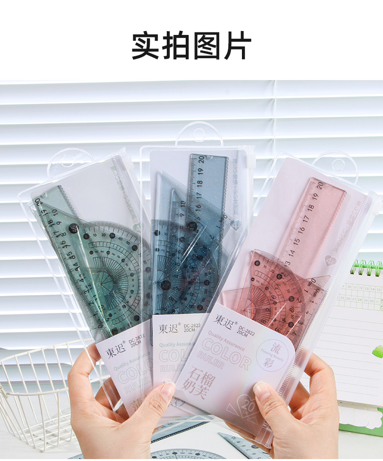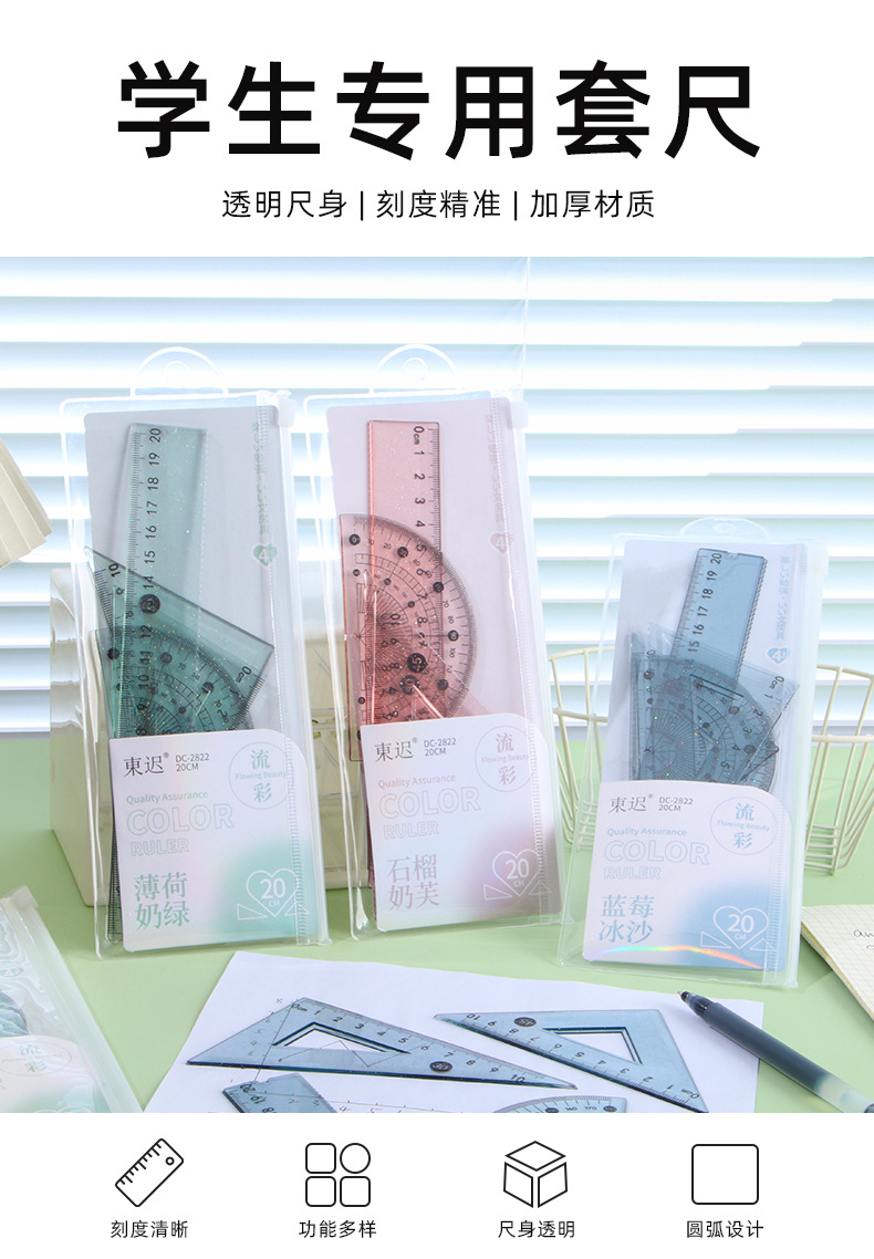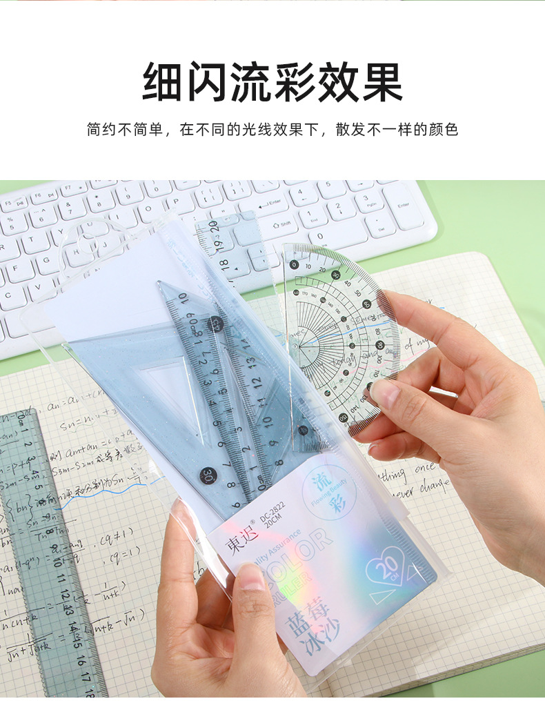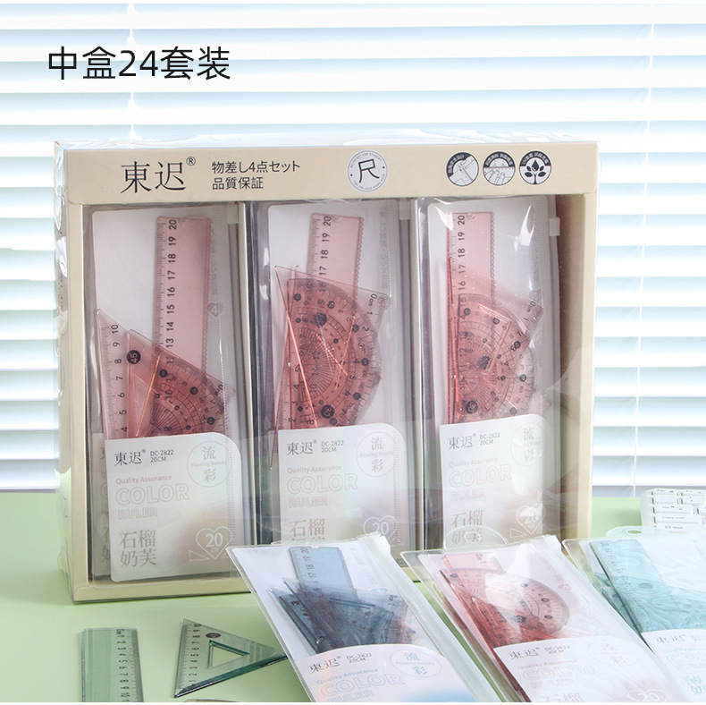 Juego de cuatro piezas de regla de flujo creativo, regla de alto valor 20cm, regla especial para estudiantes de escuela primaria, papelería triangular al por mayor