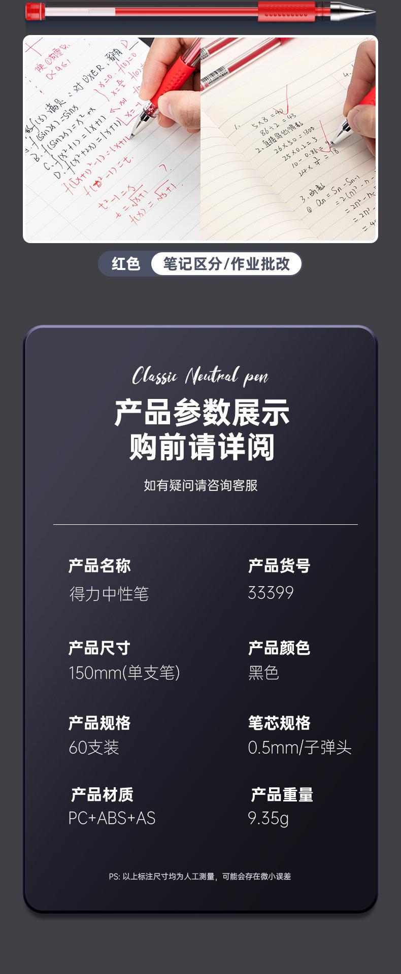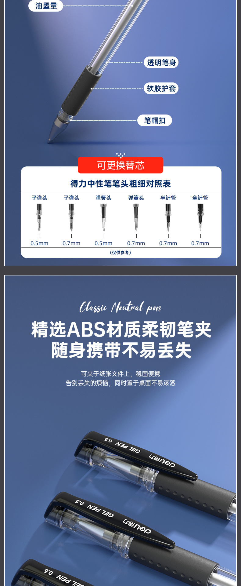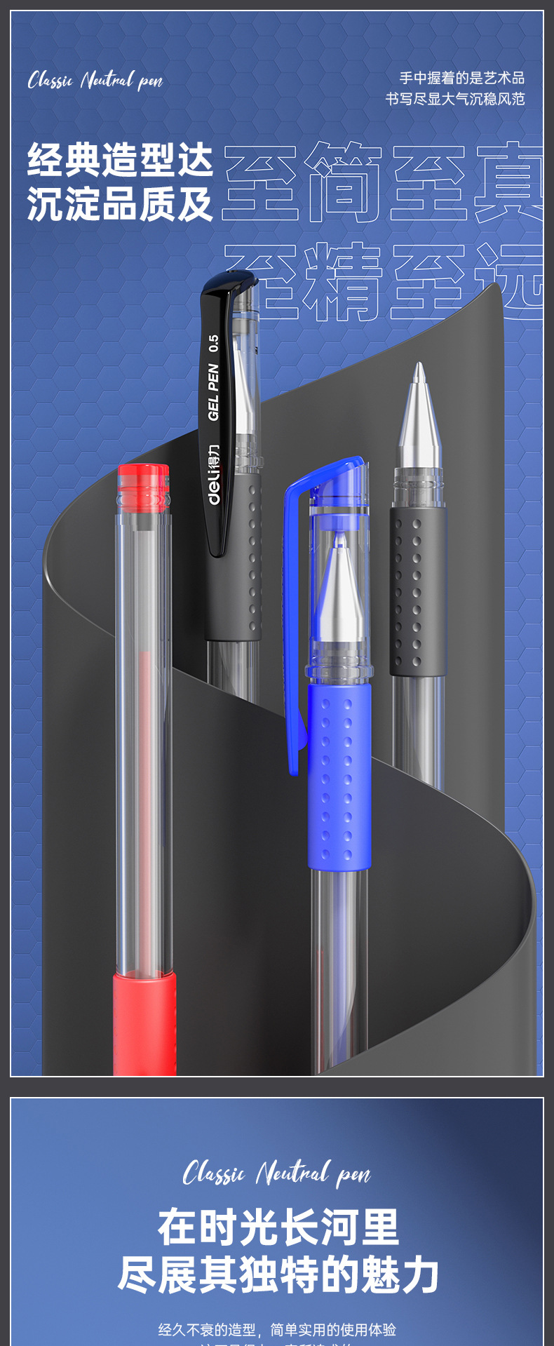 Deli / Deliky bolígrafo neutro de 0,5 mm con tapa de bala bolígrafo de firma negro rojo azul marcado 33399
