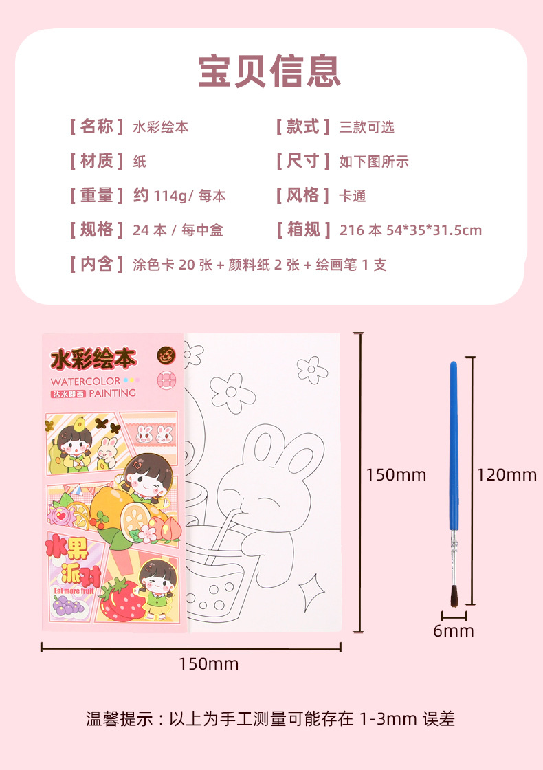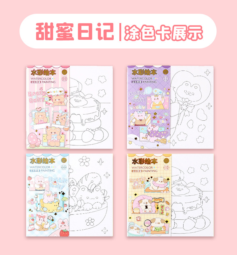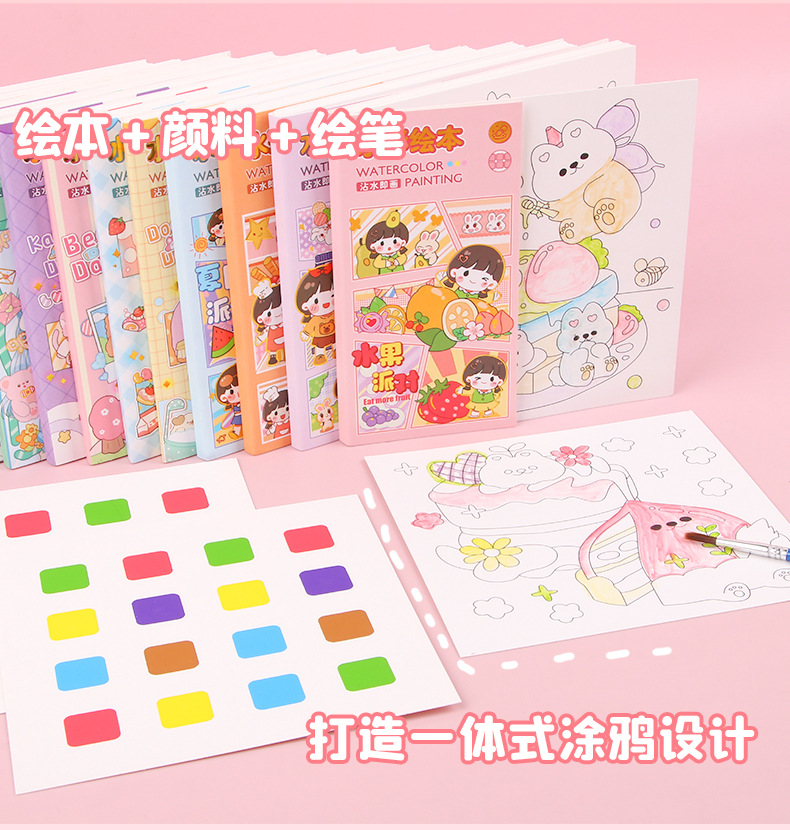 Libro de dibujos animados de acuarela para niños Lindo libro de pintura de agua de graffiti infantil bebé papel para colorear Regalo De estudiante papelería