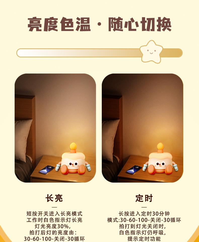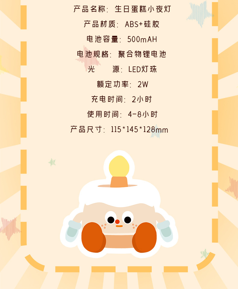 Cumpleaños lindo pastel de los niños noche luz dormitorio inducción atmósfera luz dibujos animados hogar ojo protección creativa stay regalo
