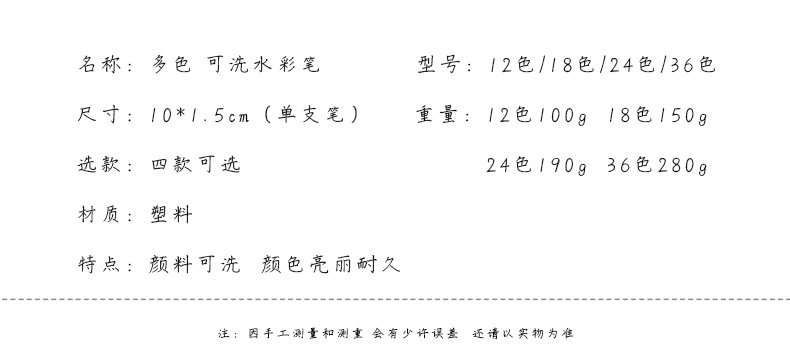 | Color | 12 colores,18 colores,24 colores,36 colores |