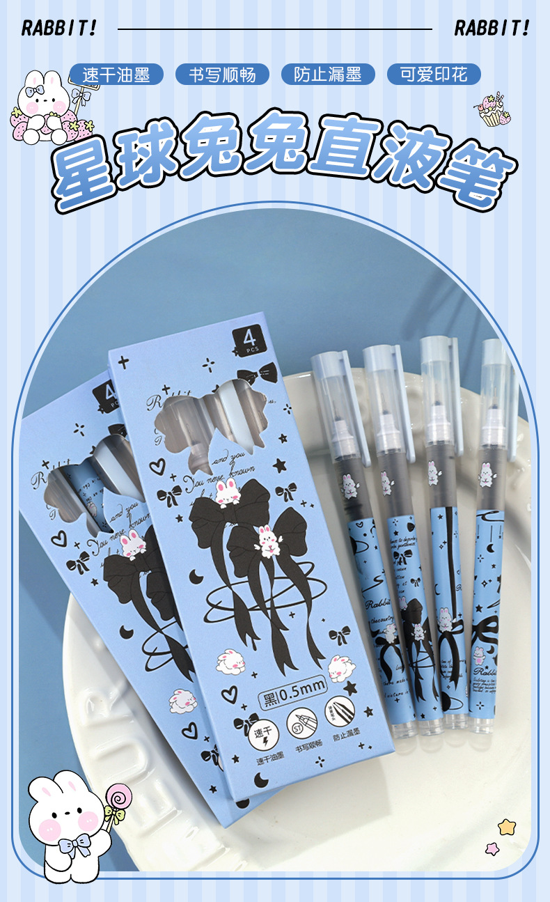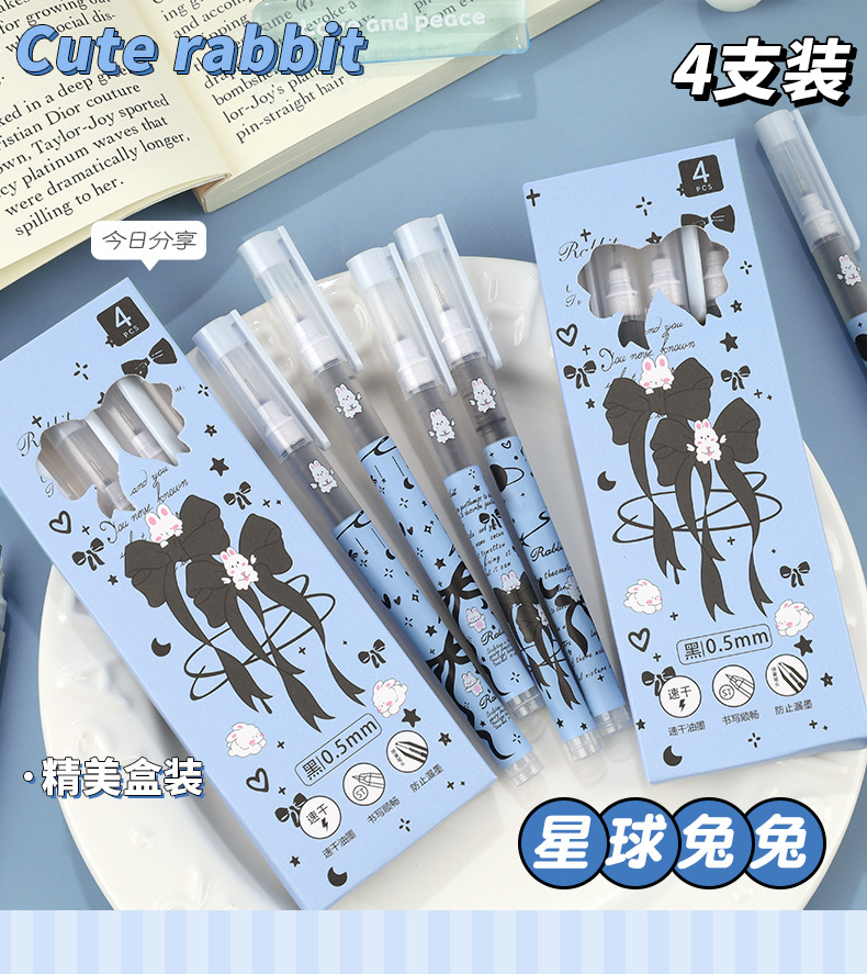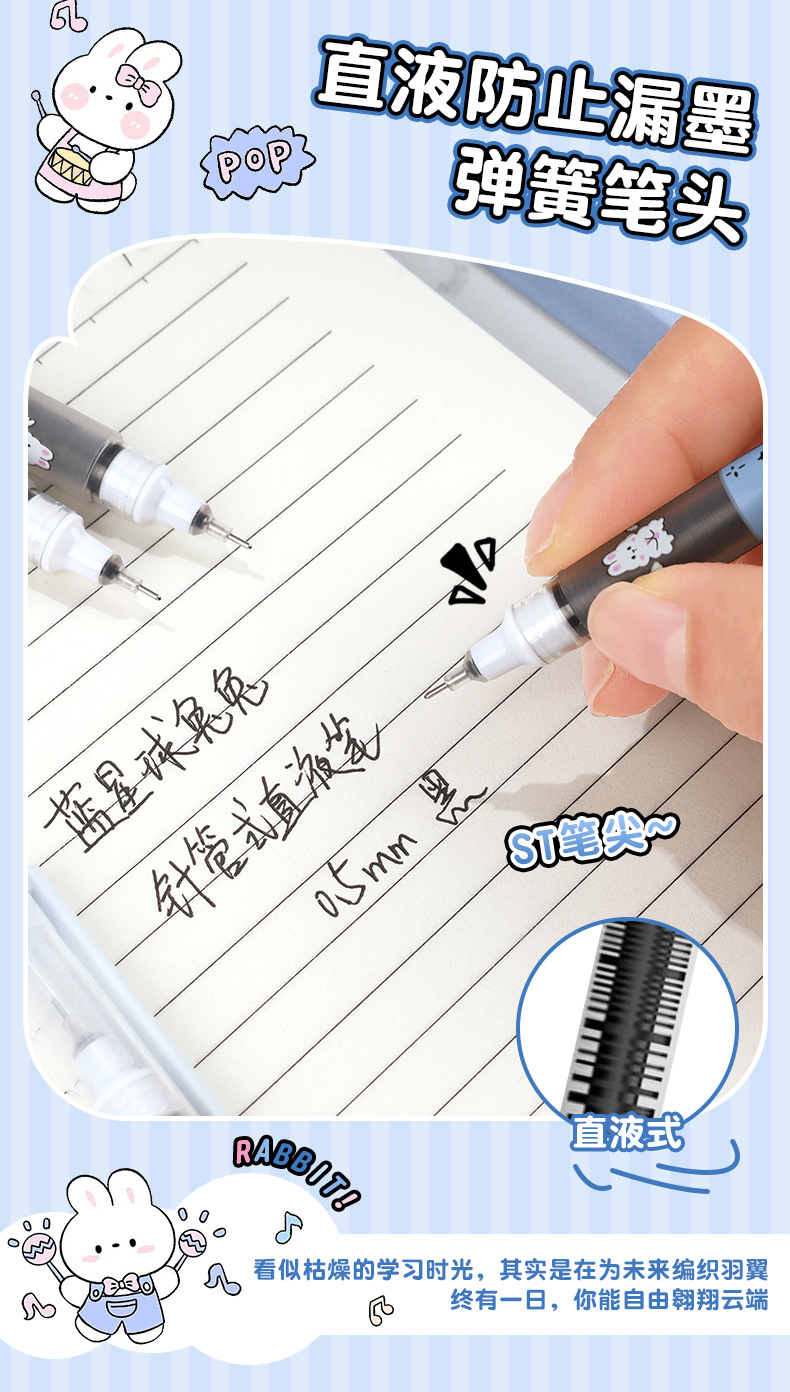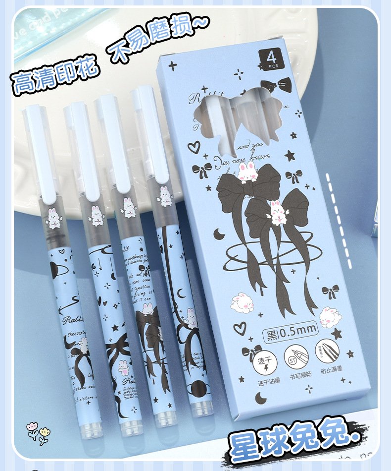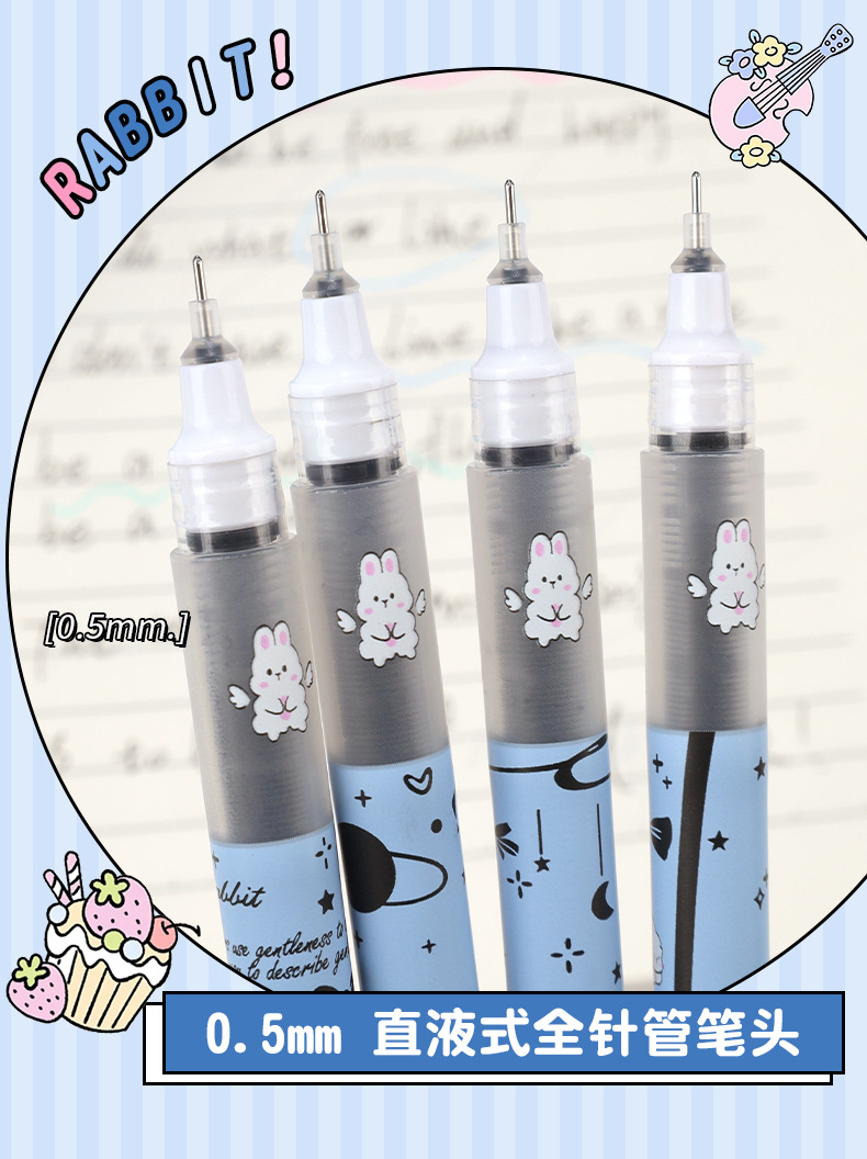 Planet Tutu Pluma para caminar con cuentas recta de dibujos animados de secado rápido y suave Pluma de góndola negra de 0,5mm Papelería para estudiantes al por mayor