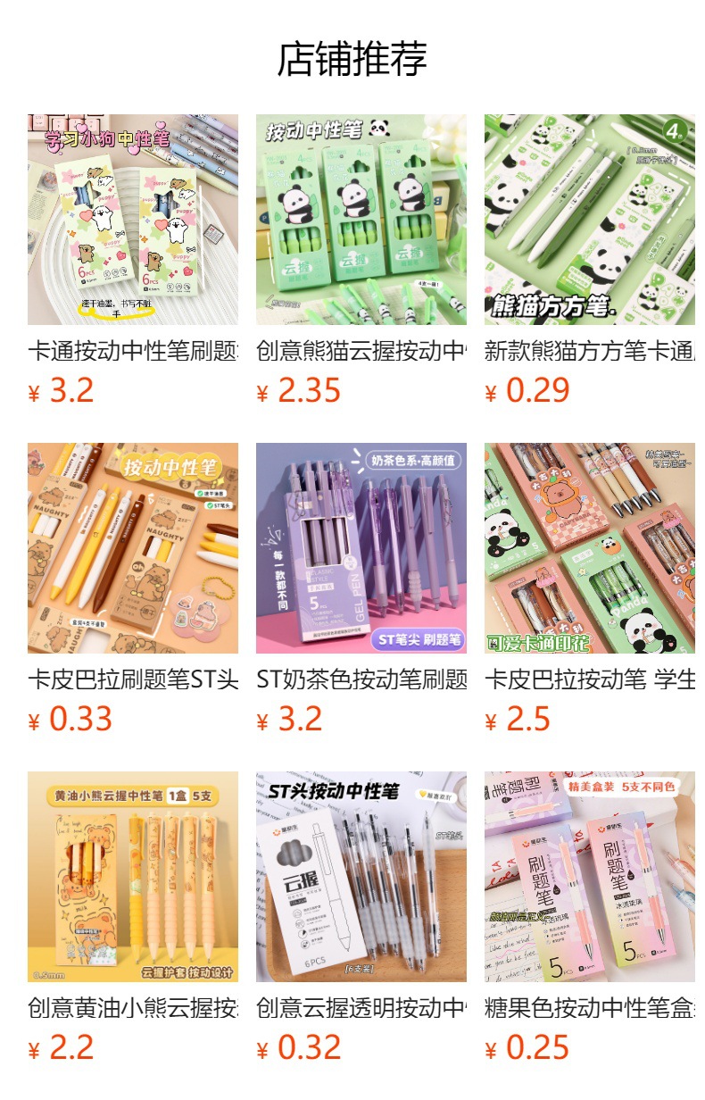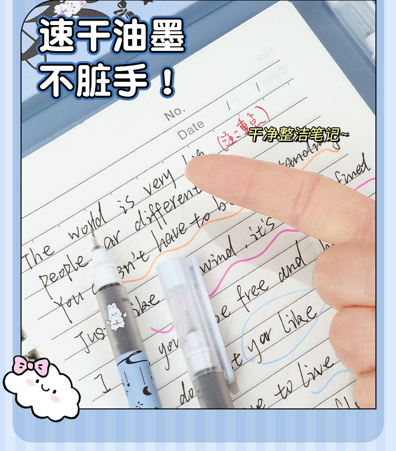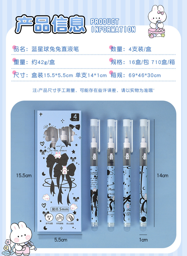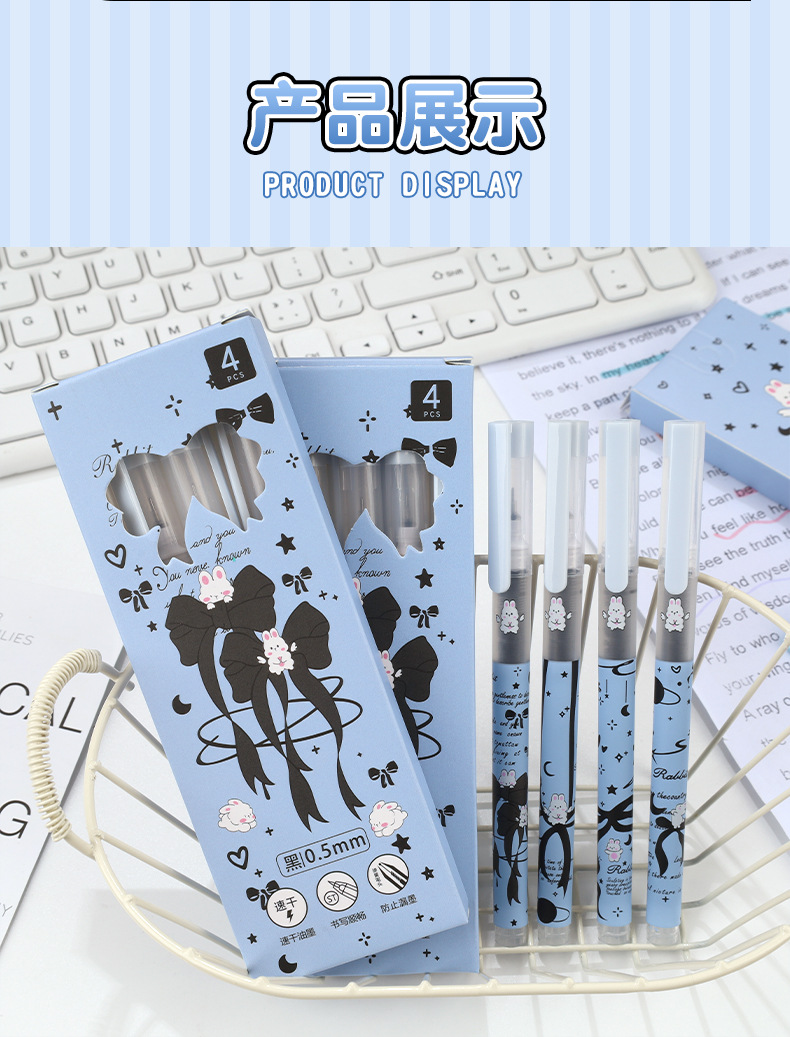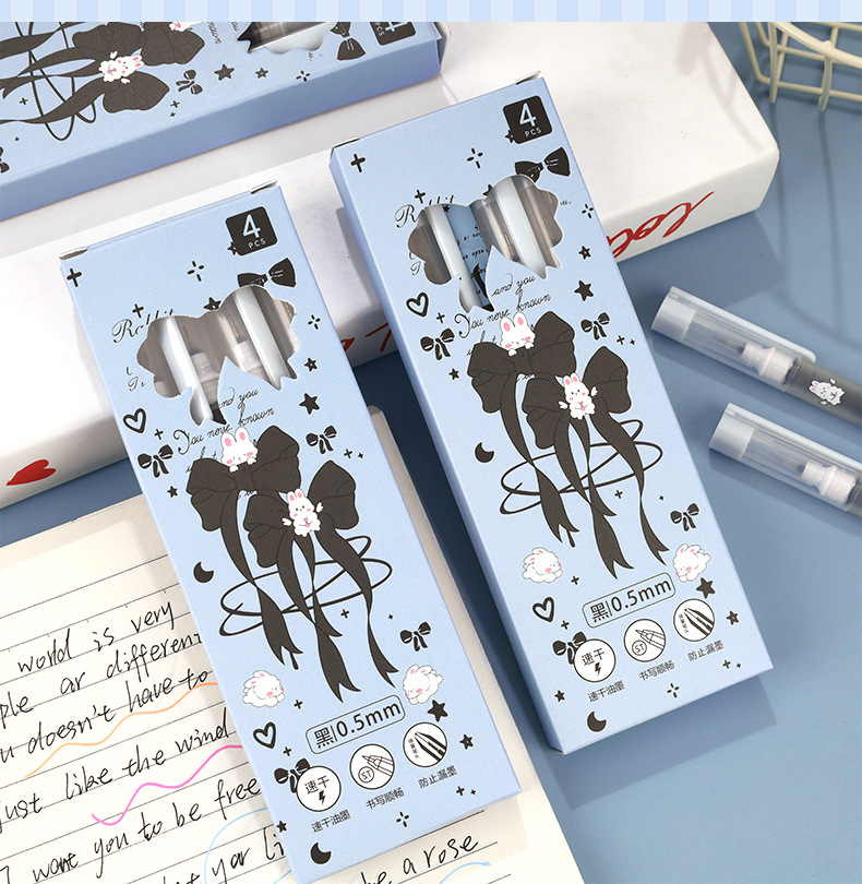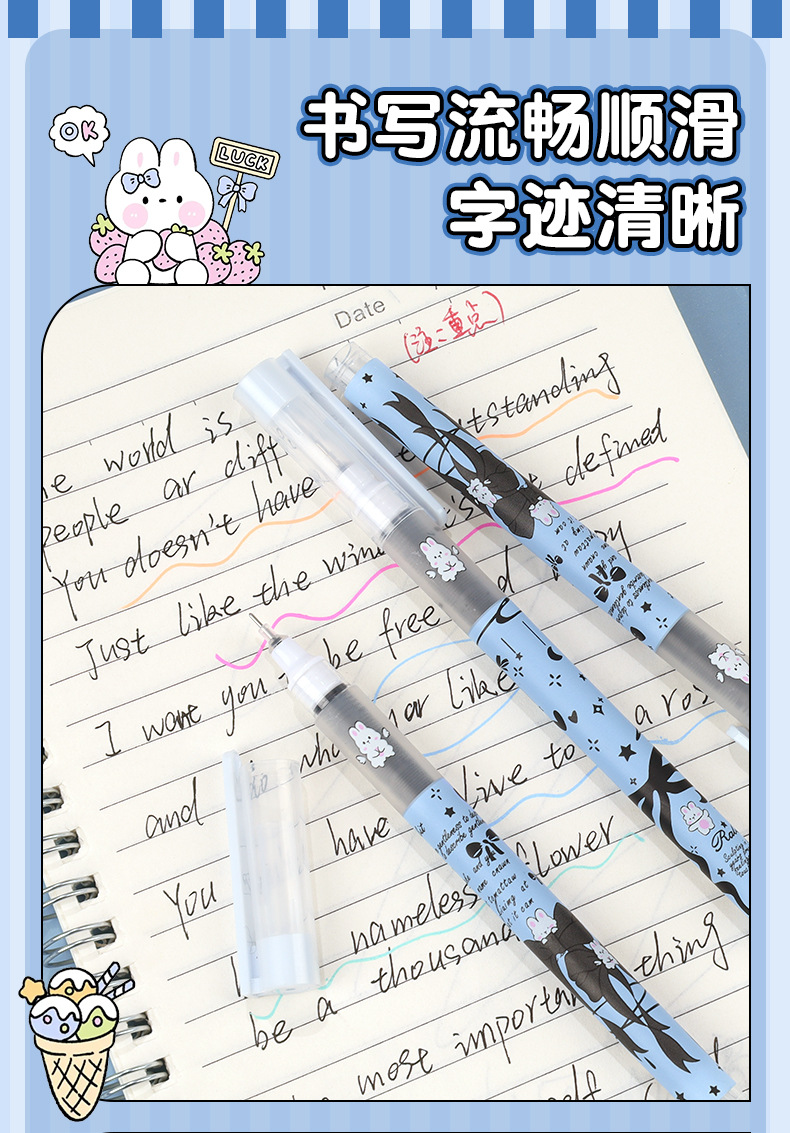 Planet Tutu Pluma para caminar con cuentas recta de dibujos animados de secado rápido y suave Pluma de góndola negra de 0,5mm Papelería para estudiantes al por mayor