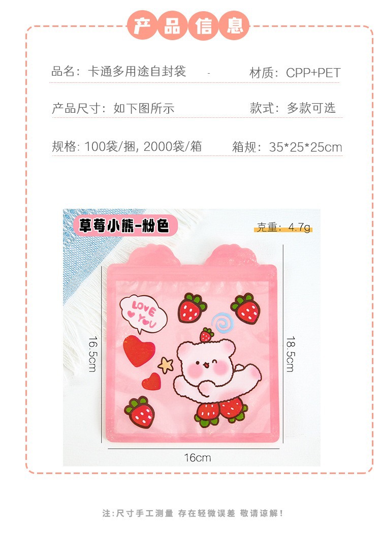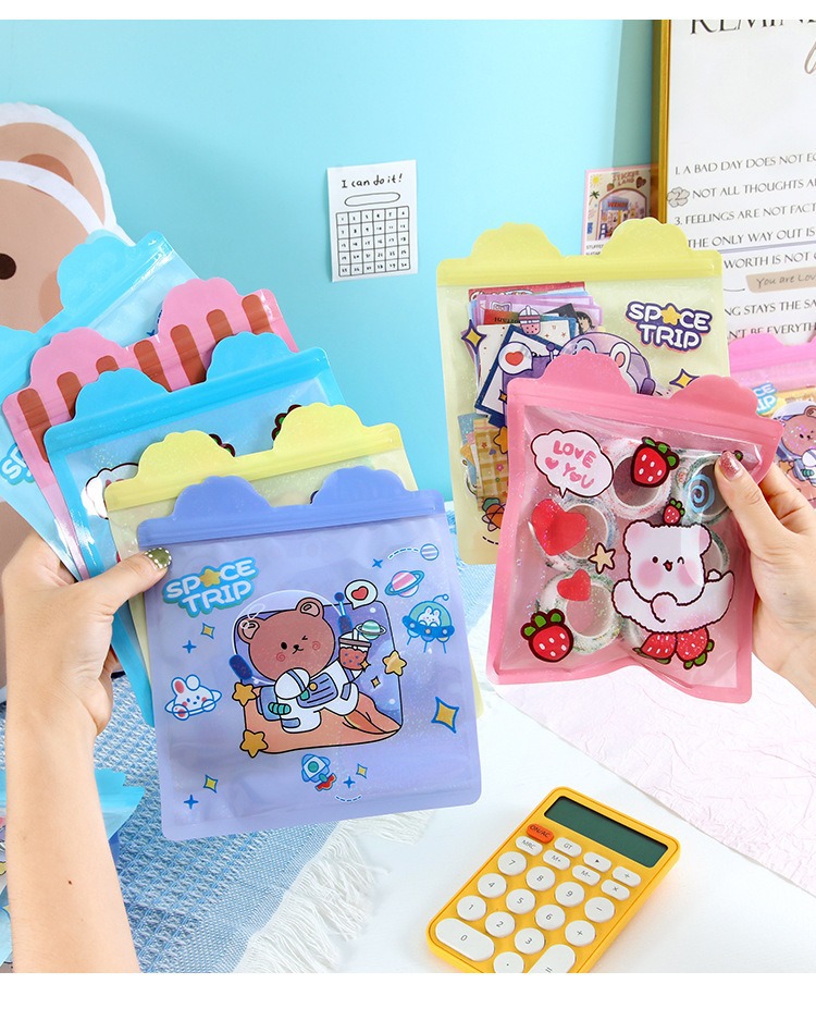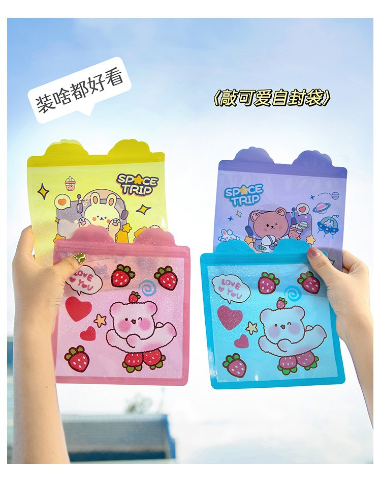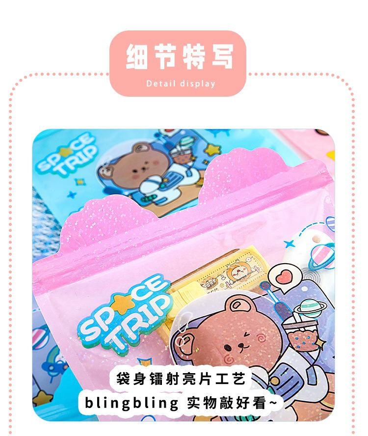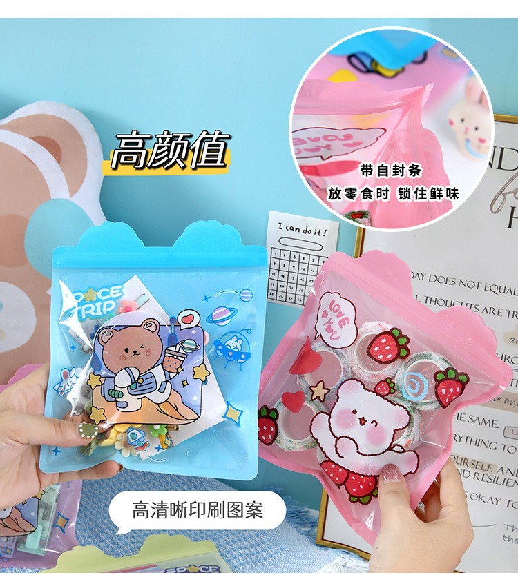 Bolsa de sello láser especial de dibujos animados personalizada encantadora bolsa de sello translúcida galletas bocadillos bolsa de embalaje de joyas