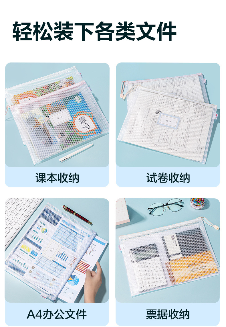 Bolsa de cremallera de la disciplina de la división de la disciplina de almacenamiento transparente para estudiantes a4 bolsa de archivos a prueba de agua gruesa 63482