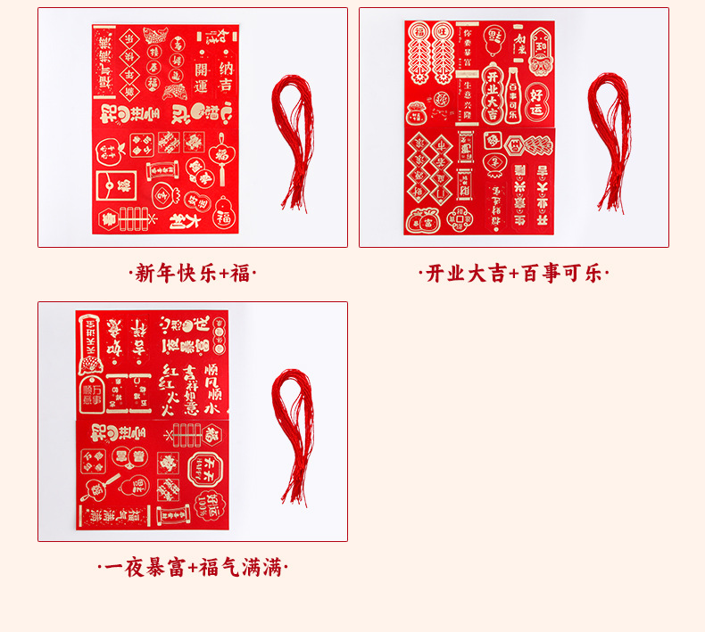 | Color | Año de la serpiente - modelo de flecos láser, modelo de flecos rectangulares, una noche de riqueza + felicidad, apertura Daji + pepsi, feliz año nuevo + felicidad |