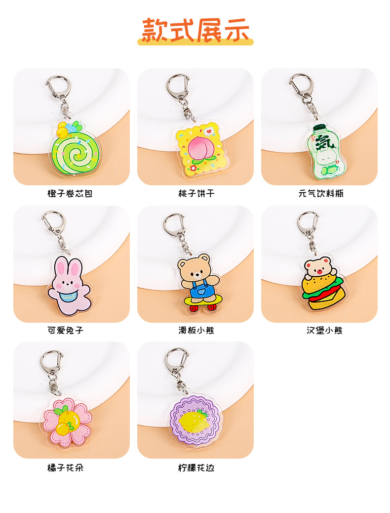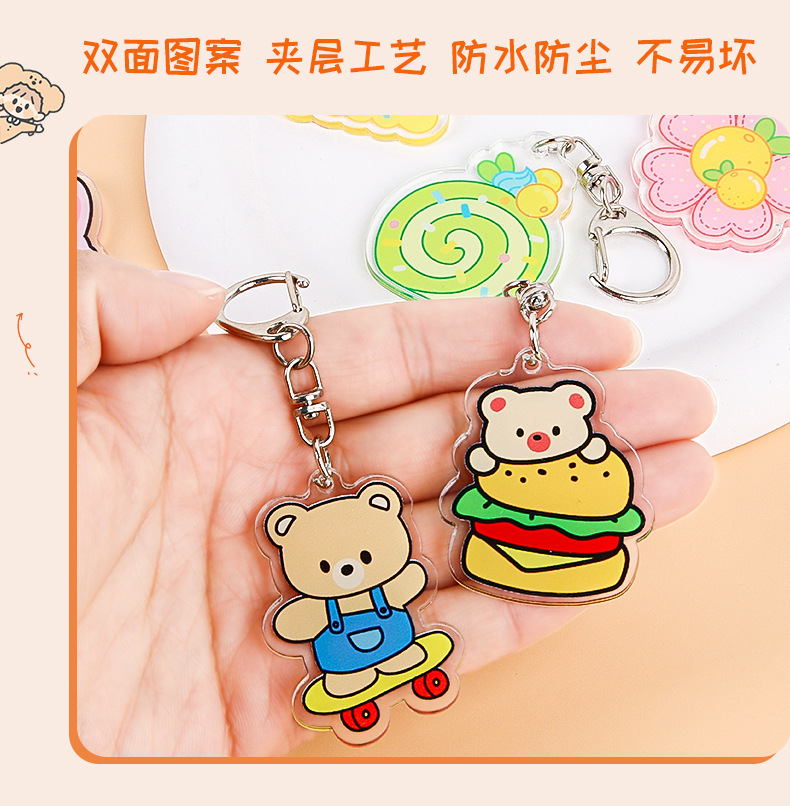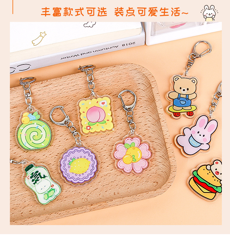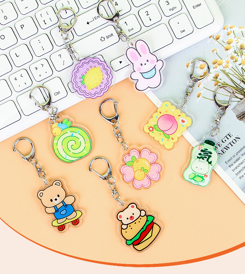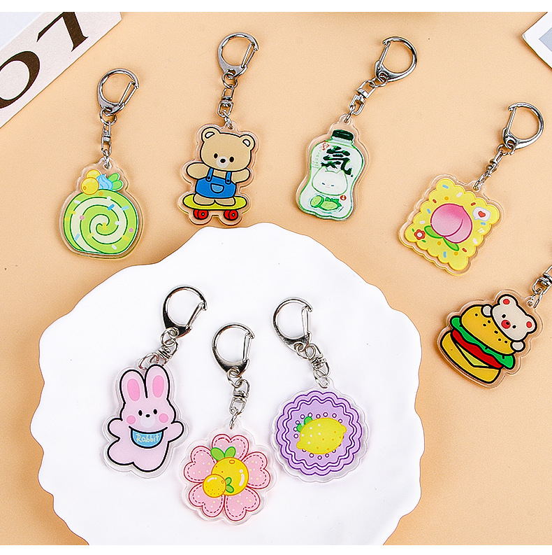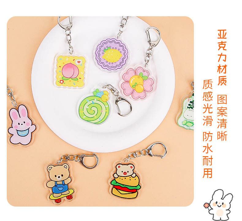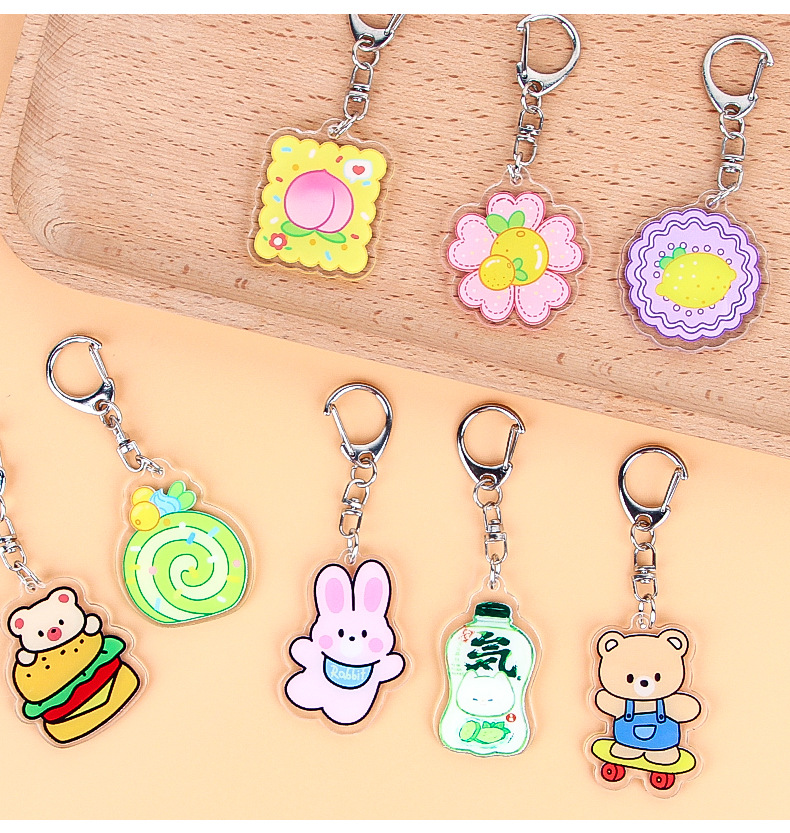 Creativo de dibujos animados fruta flor color llavero lindo estudiante acrílico mochila colgante adornos Accesorios al por mayor
