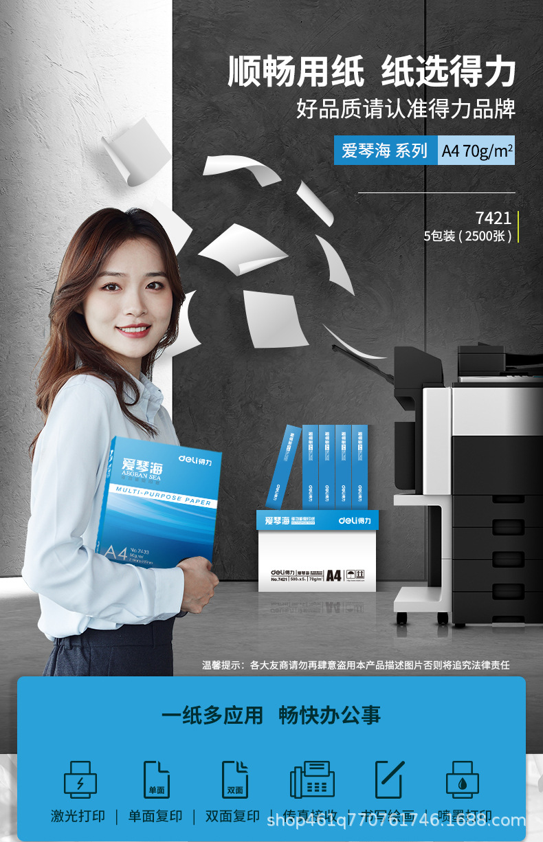 Deli Aegean a4 papel de impresión 80g papel de copia paquete único al por mayor papel de oficina para estudiantes FCL envío gratis