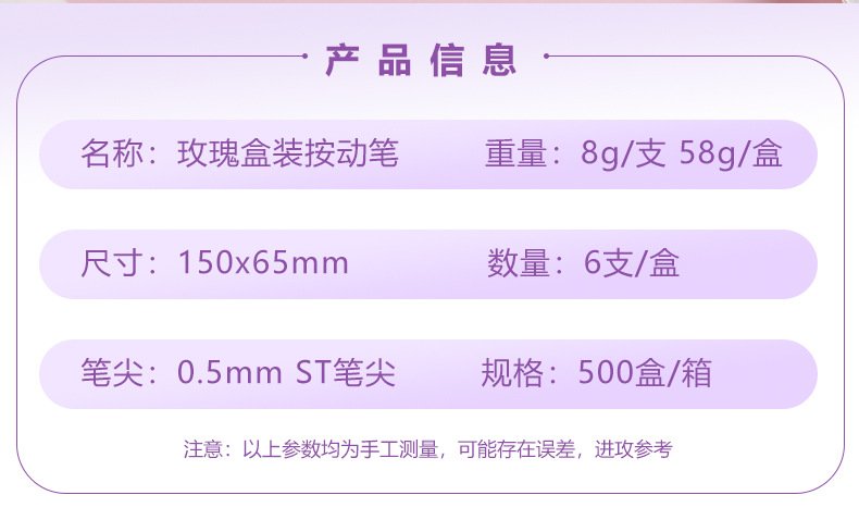Rose Boxes Stud High Face Value ST Head Quick Seek Water-based Pluma Office Firm Pluma Papelería al por mayor