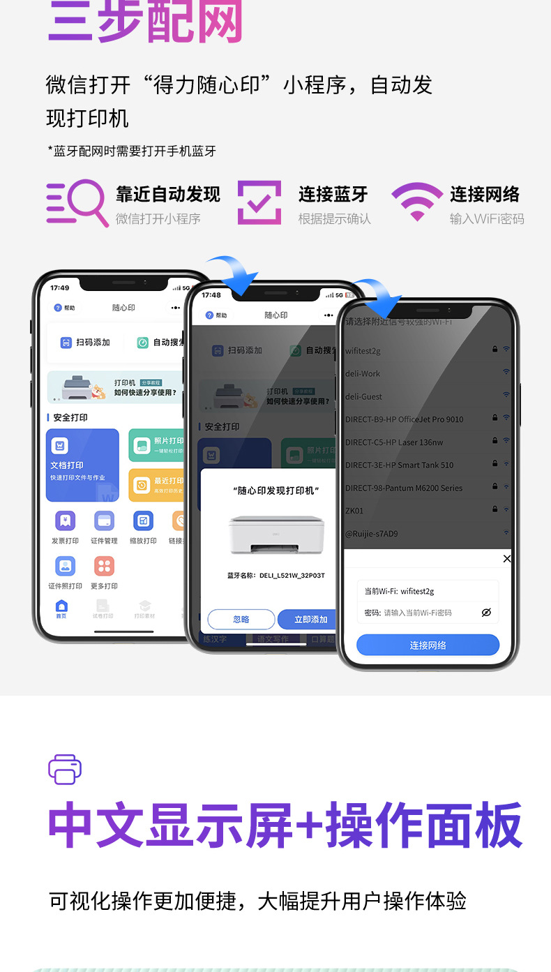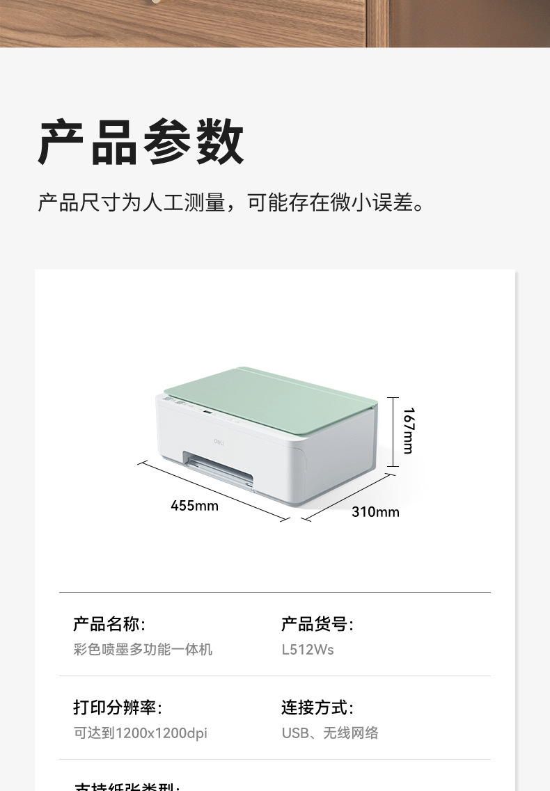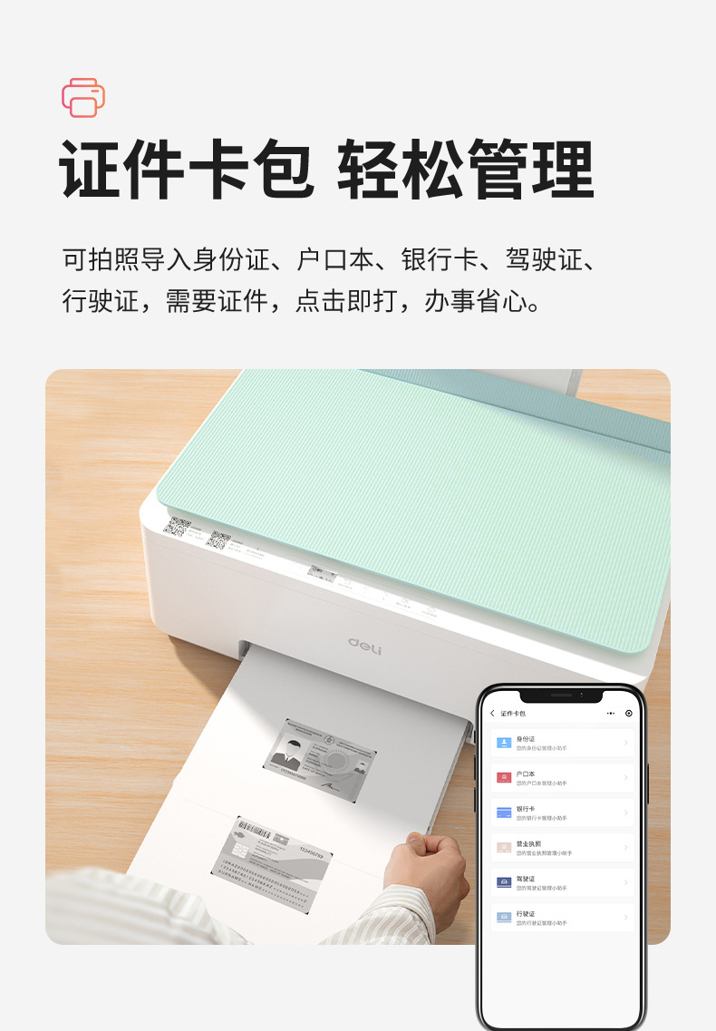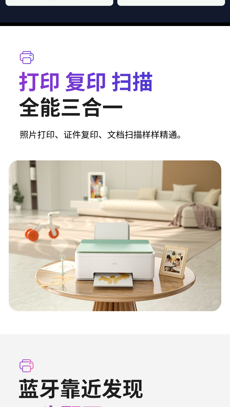 Deli/Deli Home Wireless Printing, Escaneo y Copiar Teléfono móvil Bluetooth Conexión directa Impresora de inyección de tinta en color fotográfico