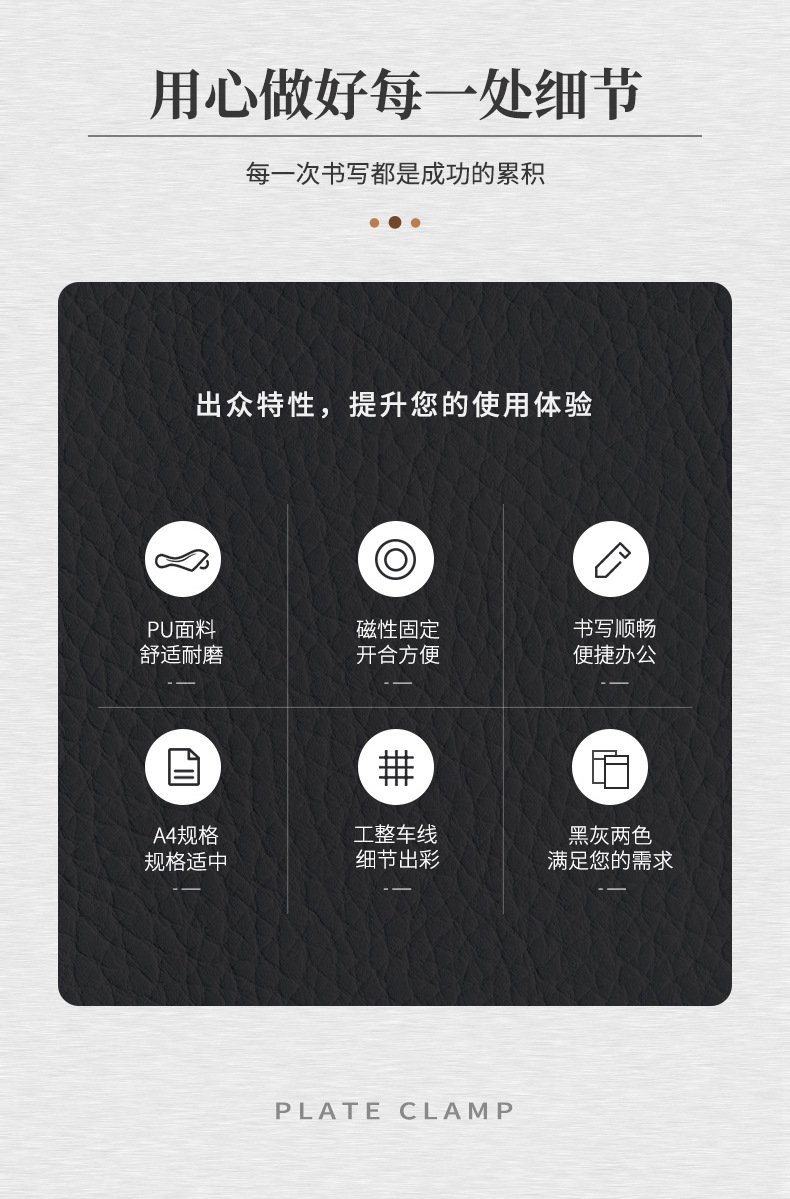 | Color | Clip de cuero A4 negro, clip de cuero A4 gris |
