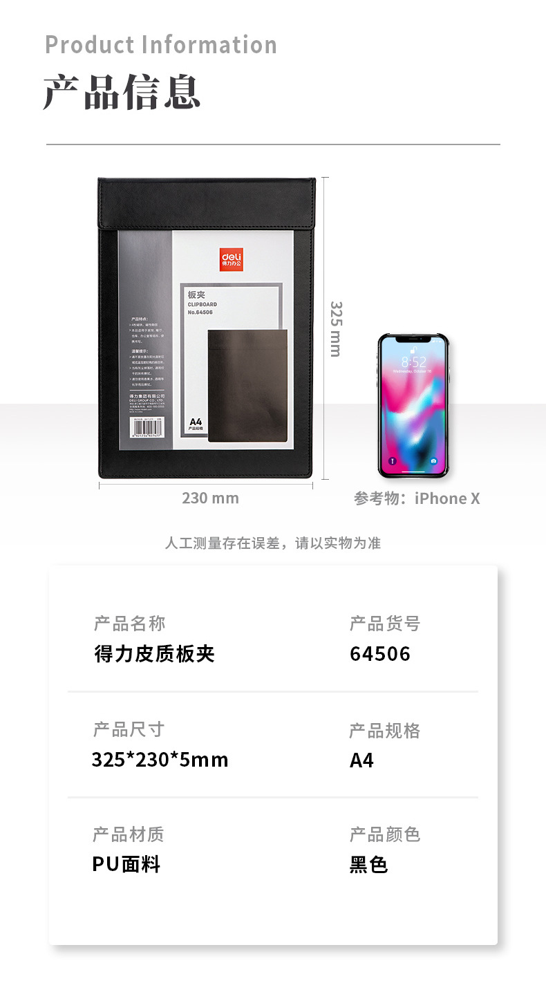 Déli A4 cartelera de cuero cartelera de almacenamiento de cuero cartelera de almacenamiento de archivos de oficina cartelera de almacenamiento de archivos 64506