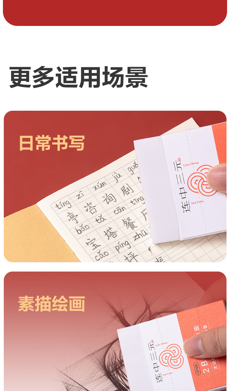 De Lianzhong San Yuan para aumentar el borrador de exámenes 2b para estudiantes de primaria de primer grado, sin escamas, limpio y difícil de dejar marcas