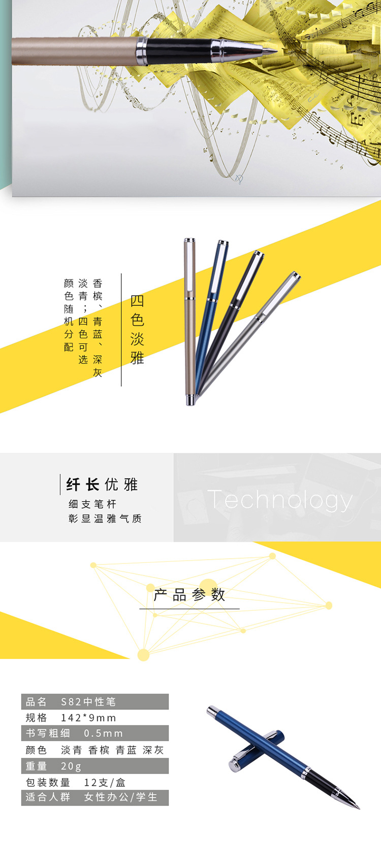 Deli Advertising Pen Pluma de geles de impresión personalizada Pluma de agua de metal de texto Exposición empresarial Pluma de regalo Pluma de firma S82