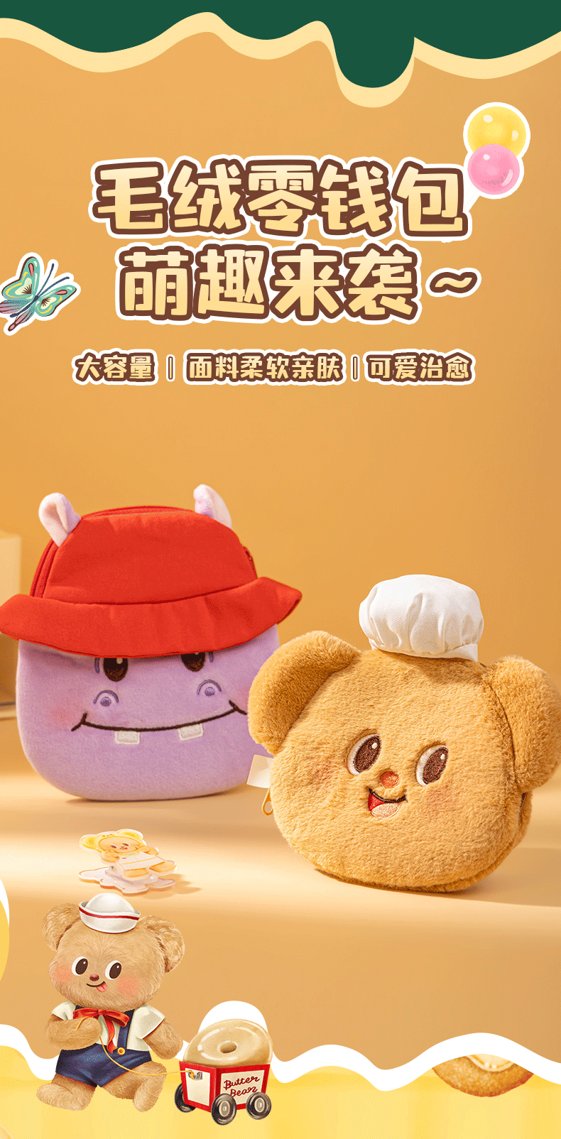 Deliky mantequilla Bear monedero de cambio auténtico púrpura hipopótamo mujer bolsa de almacenamiento de lápiz labial lindo botón