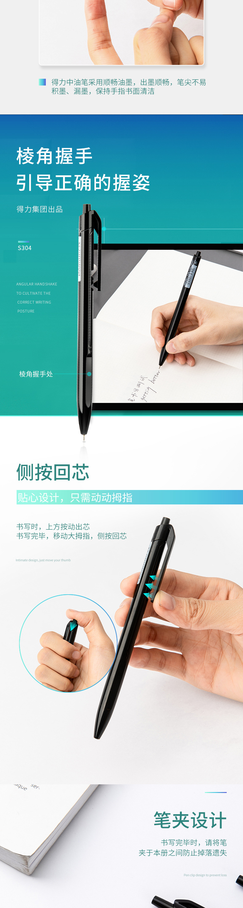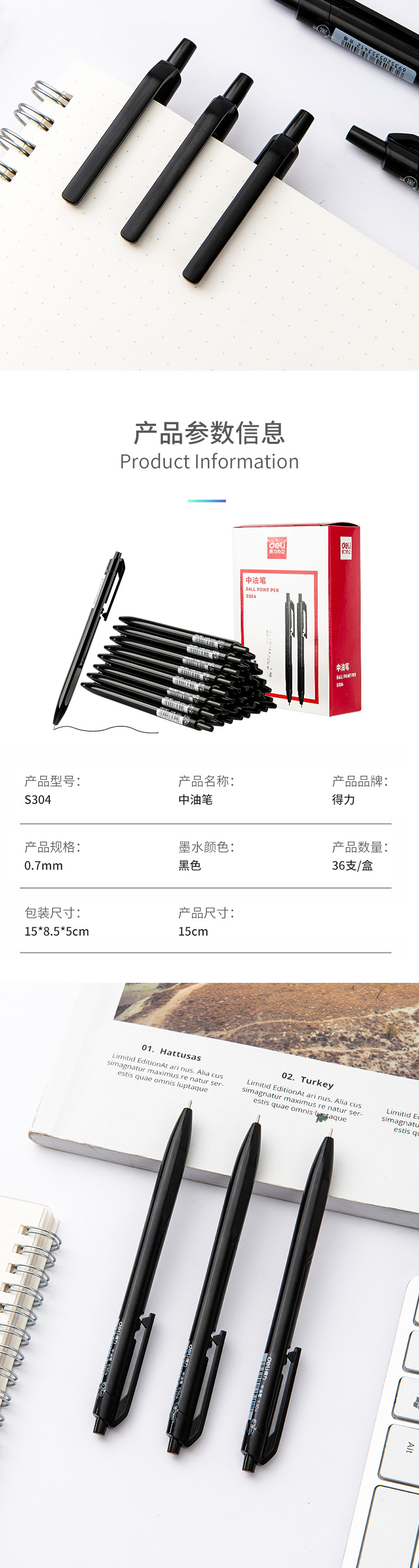 Bolígrafo 0.7mm negro S304 estudiantes de oficina de negocios 36 negros