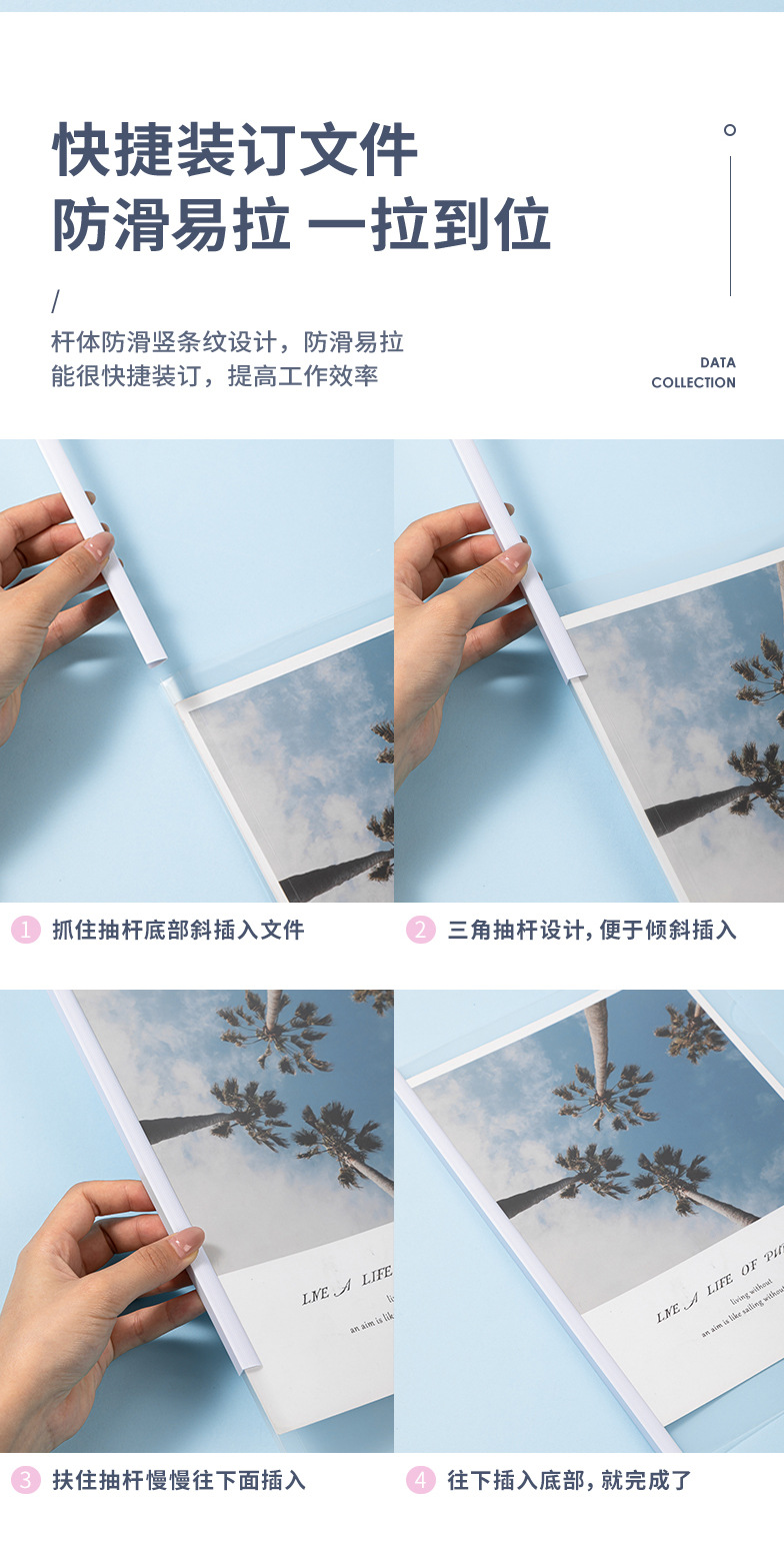 A4 abrazadera de varilla de extracción abrazadera transparente abrazadera de archivo CV abrazadera de papel de prueba abrazadera de varilla de tracción de plástico transparente 33375