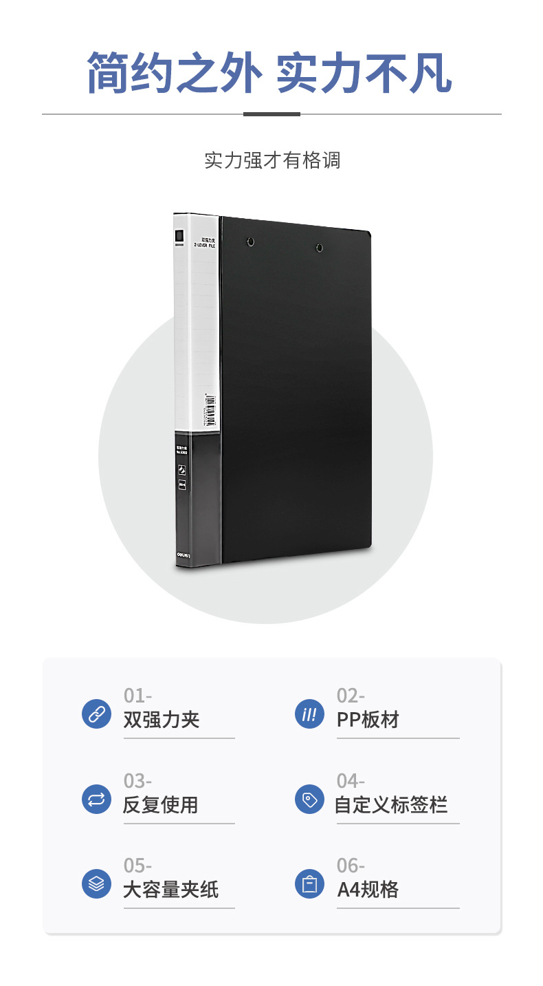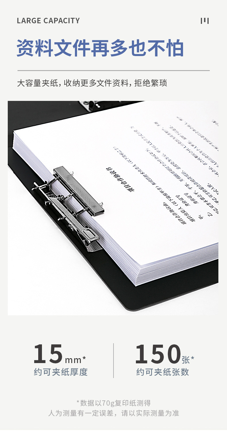 A4 Doble fuerza abrazadera de placa de abrazadera carpeta de archivo negro abrazadera de expediente de doble abrazadera de papel de prueba de oficina 5302 negro