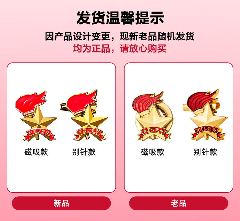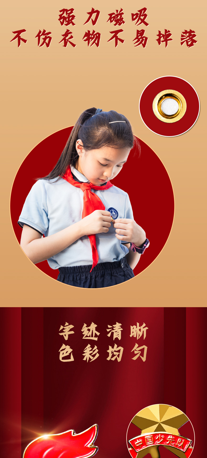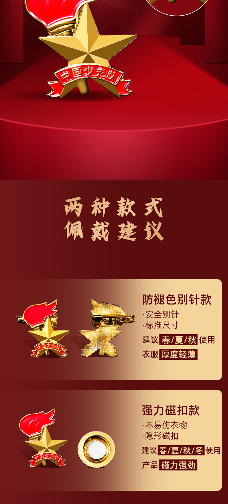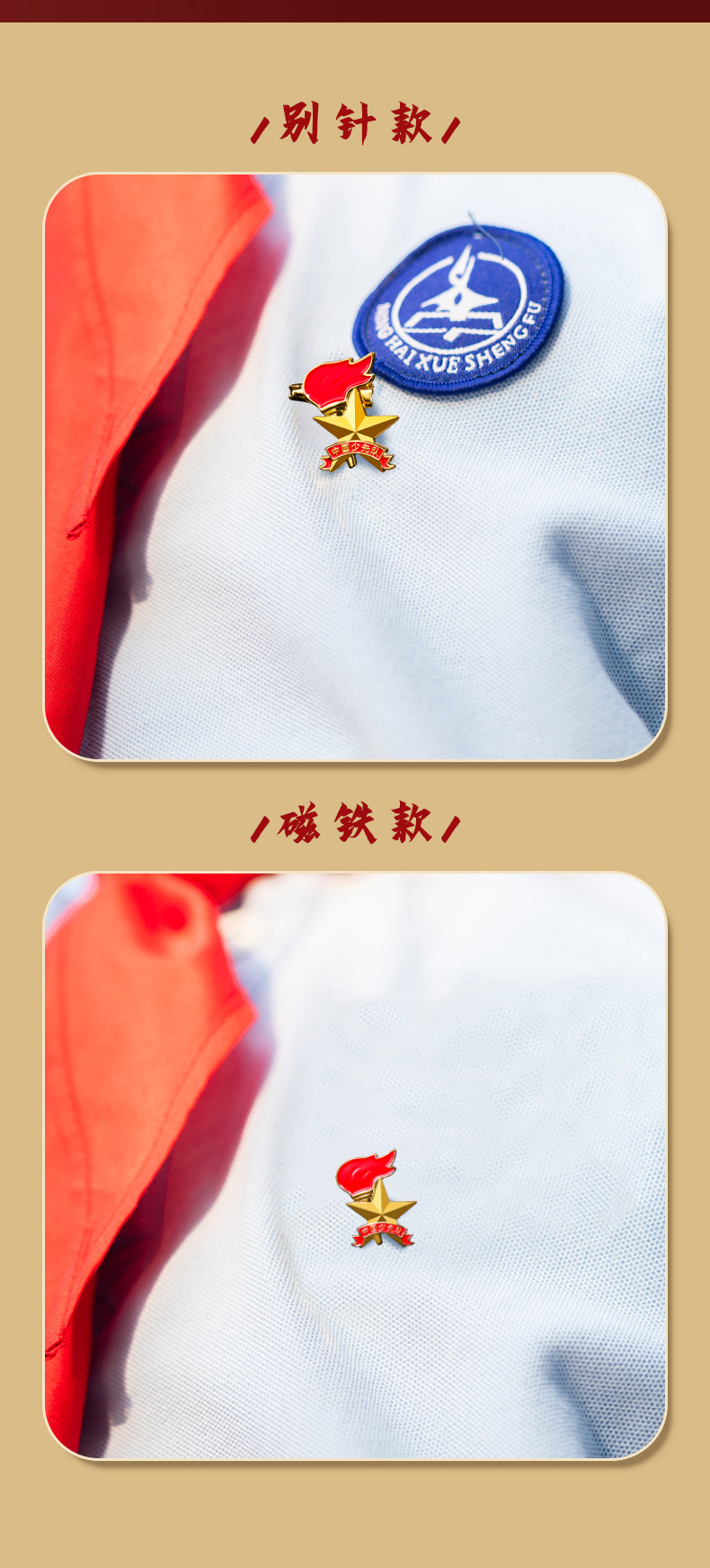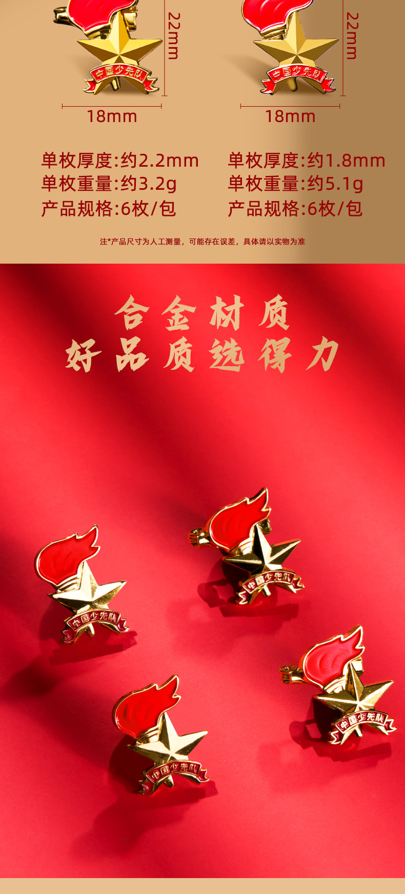 Deli Young Pioneers Emblema del equipo de la escuela primaria Pin Hebilla magnética 6 piezas Emblema del equipo Insignia del joven pionero Cuello rojo
