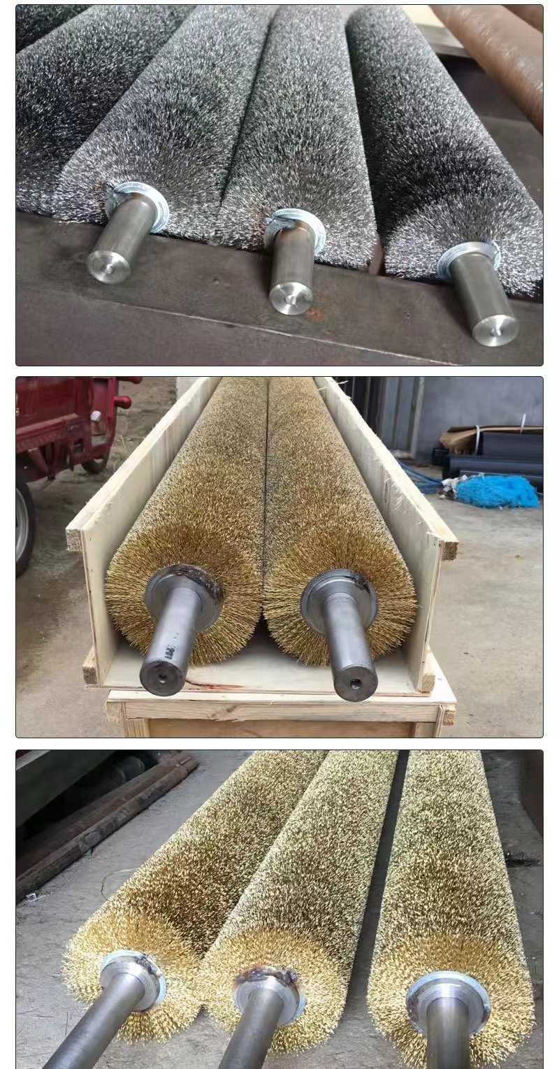 Cepillo de alambre industrial Cepillo de rodillo Kun pulido y pulido de óxido Alambre de acero inoxidable recubierto de cobre Alambre de acero DuPont Máquina de tamiz de arena Cepillo de rodillo