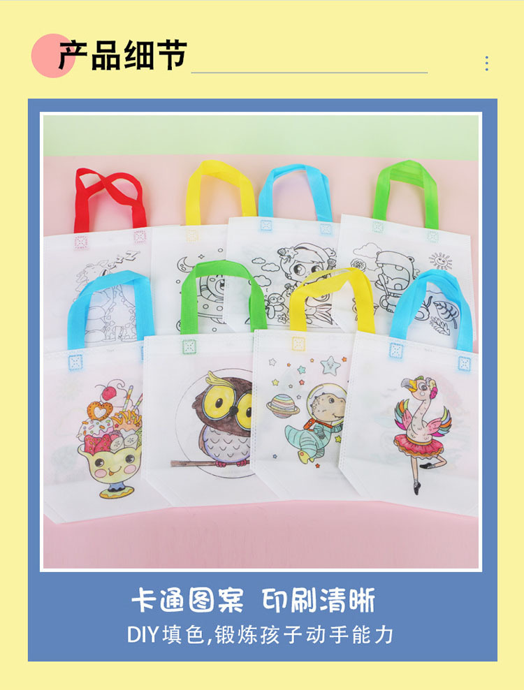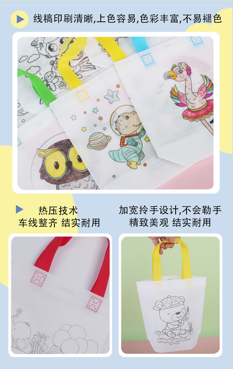 CPCE bolsa de color de graffiti no tejido de doble cara para niños bricolaje bolso de mano de pintura pintado a mano para colorear