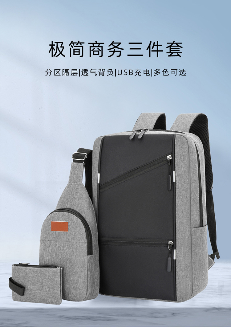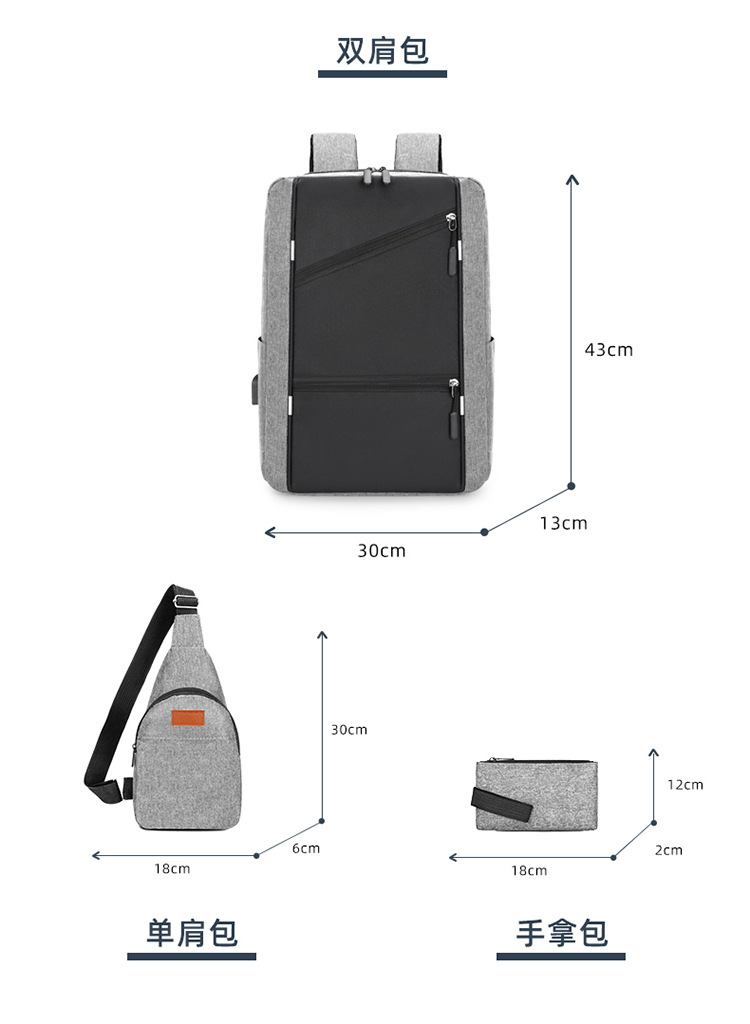 Mochila de comercio exterior, mochila multifuncional para hombre, conjunto de tres piezas, mochila de negocios de nailon de gran capacidad, mochila para ordenador