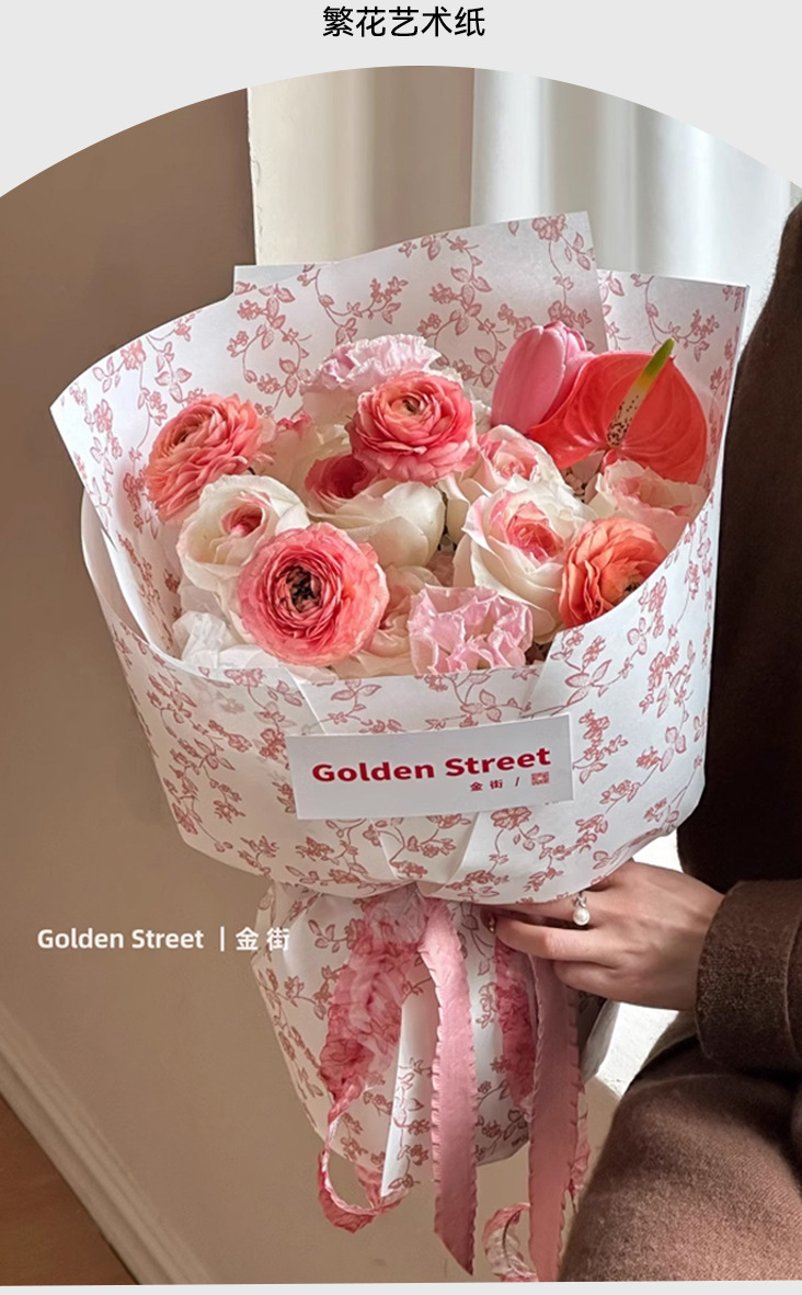 Papel de arte floral Papel kraft retro europeo Bolso floral Papel de flores Ramo de papel de regalo Pictorial Papel de arte Nostalgia