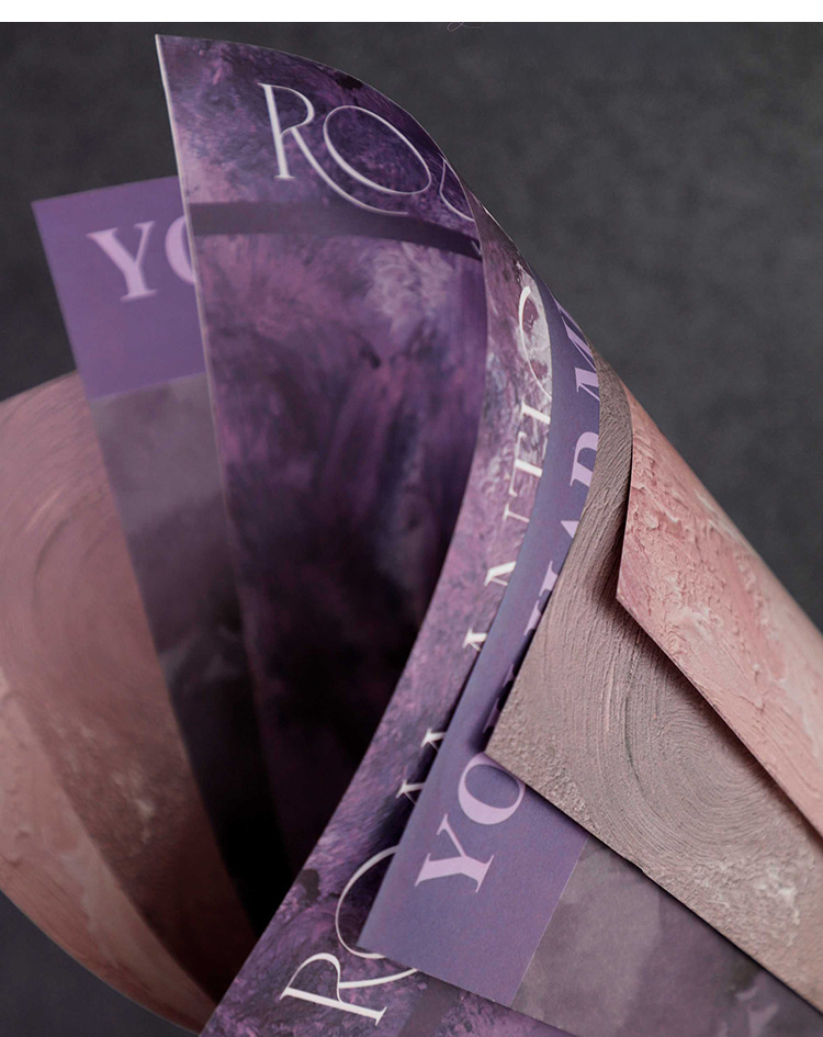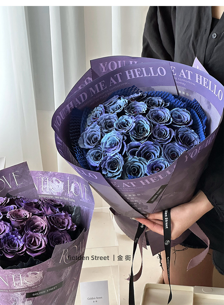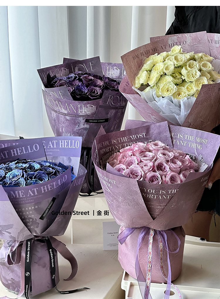 Venta al por mayor personalizado ramo de papel Kraft tienda de flores material de regalo floral pintura al óleo ciruela negro pasta flor papel de embalaje