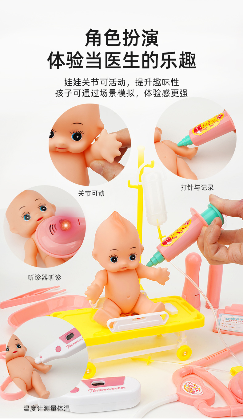 Fabricante directo para niños en casa médico juego de juguetes para niños y niñas simulación de juguetes de inyección estetoscopio caja médica