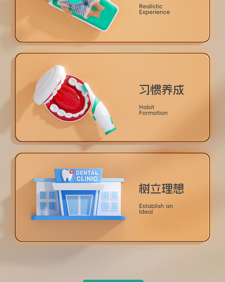 | Desarrollo de la capacidad | Emoción, visión, desarrollo intelectual, reptiles, Movimiento de manos y cerebro, agarre, sentidos, coordinación mano - ojo, otros desarrollos de habilidades, juguetes interactivos, audición, comunicación padre - hijo, cultivo de intereses |
