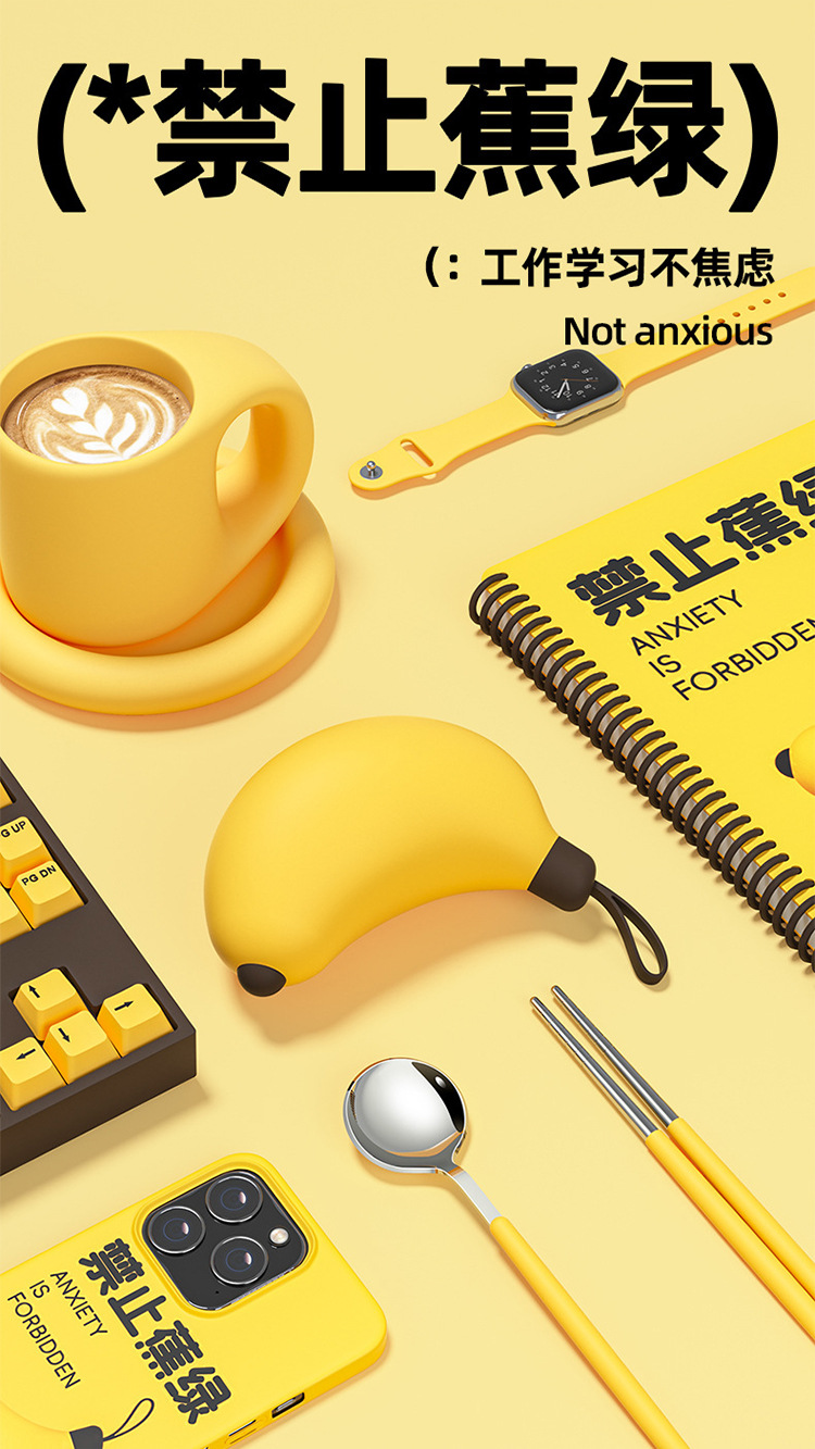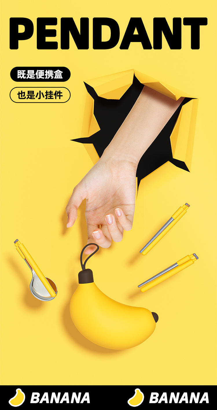 Palillos Cuchara Juego de tres piezas de plátano de acero inoxidable 304 Estudiantes oficinistas Vajilla portátil Viaje creativo