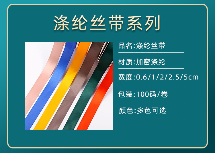 Cinta de regalo de cinta de color sólido de poliéster de una cara de 2,5 cm, cinta de embalaje, boda, cumpleaños, supermercado, tienda de conveniencia, cinta al por mayor