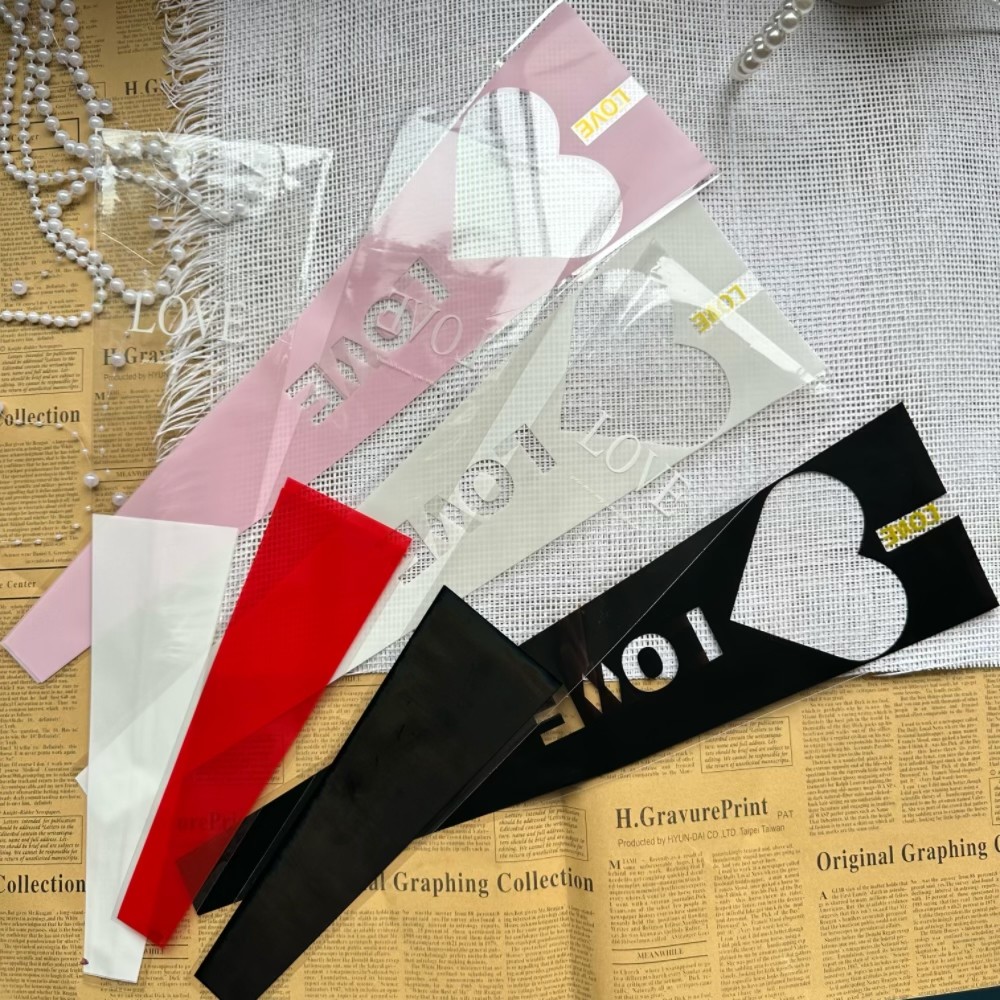 Bolsa triangular Bolsa de flores individuales Carnation Bolsa de rosas Bolsa de flores Ventana del corazón del día de San Valentín Bolsa de un solo ramo Bolsa de embalaje Amor