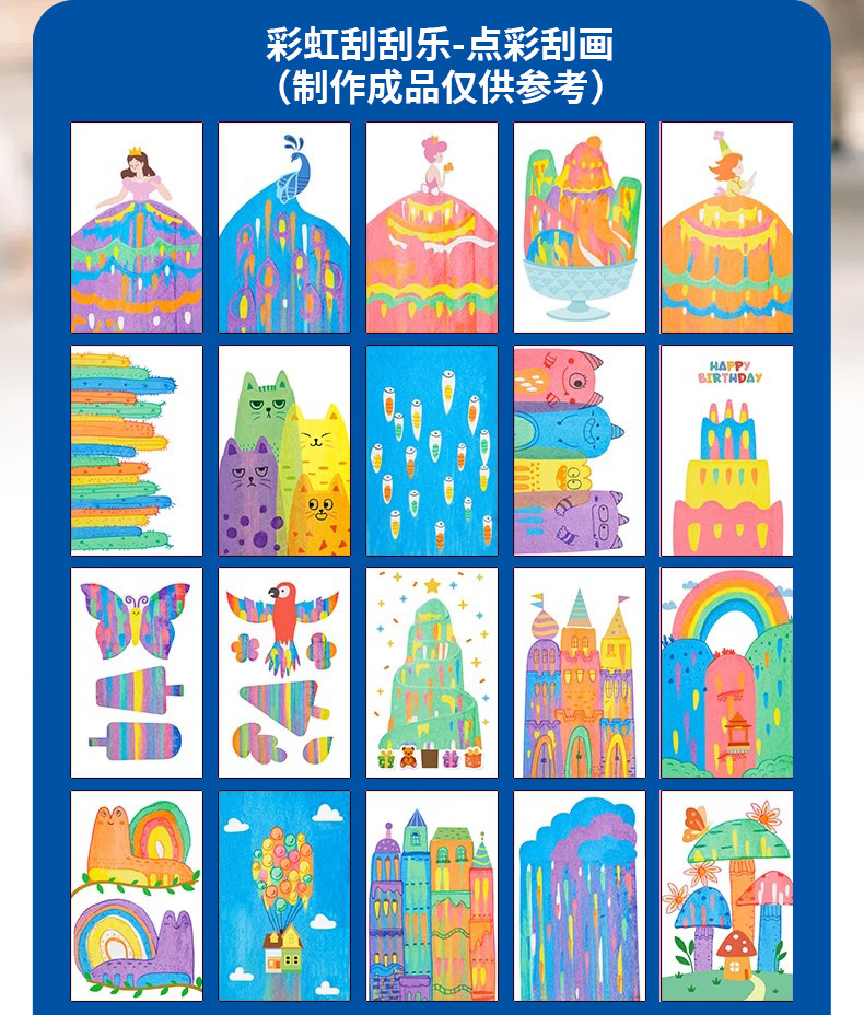 | Colores | Estilo de tapa dura de pintura arcoíris scratch-20 hojas (tanto en el anverso como en el reverso),Dibujo de arcoíris scratch [bolígrafo de acuarela * 6 colores] suplemento,Rainbow Scratch Painting Año Nuevo (tanto en el anverso como en el reverso) |