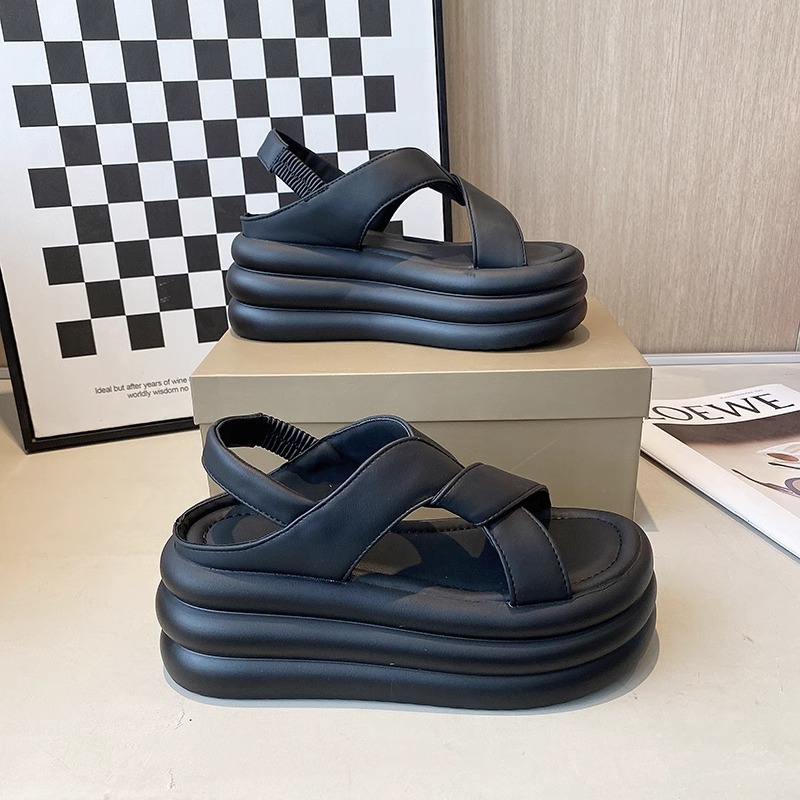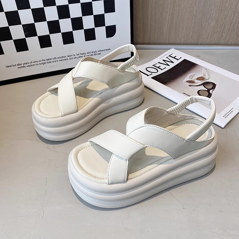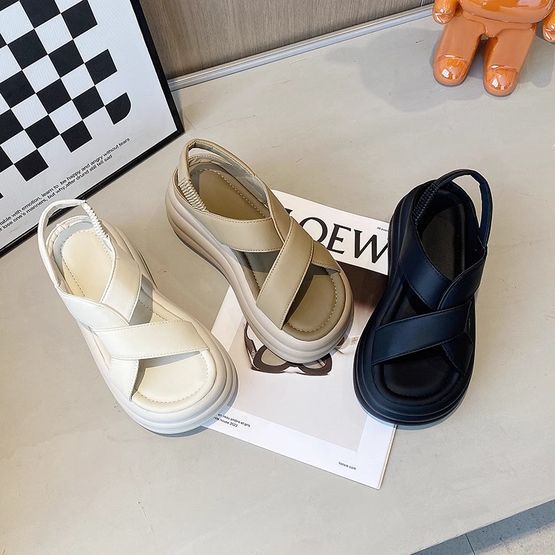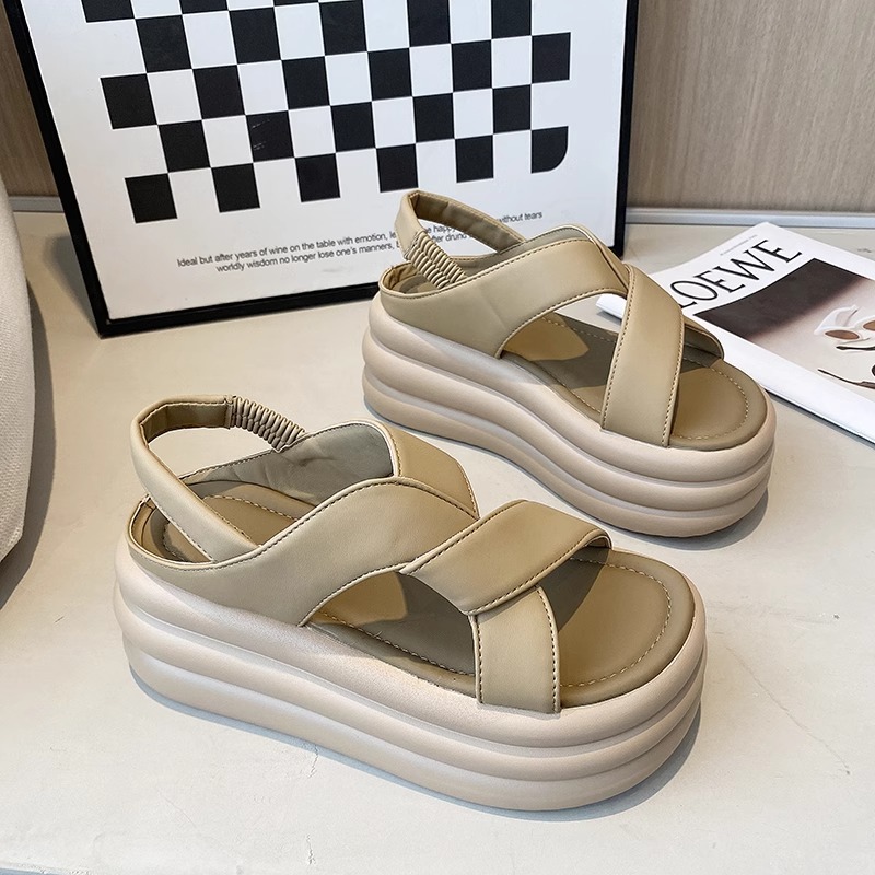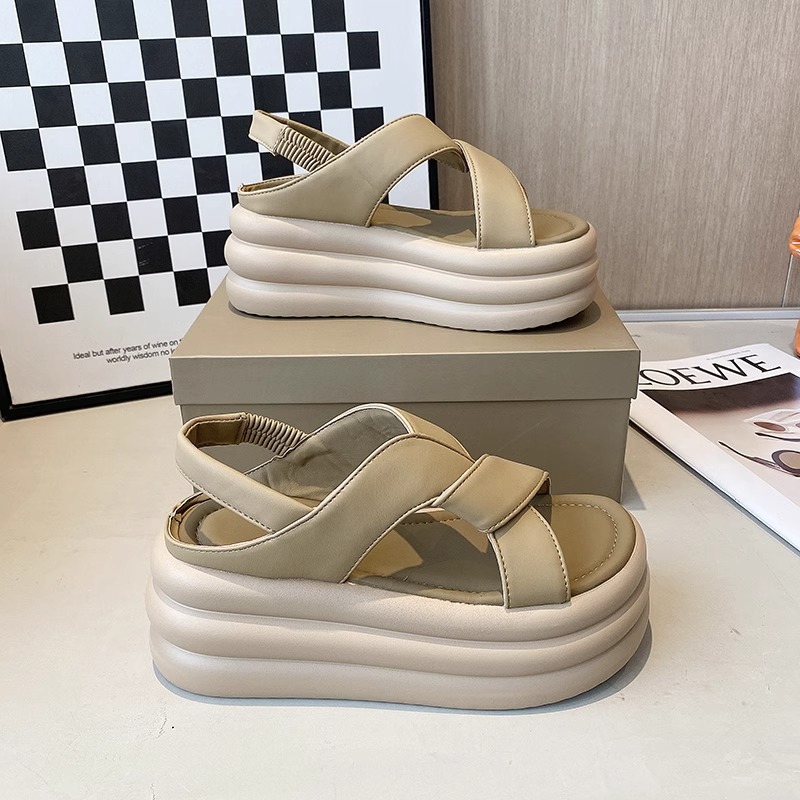 Sandalias romanas para mujeres 2025 verano nuevo estilo de muffin de fondo grueso con altura de moda con falda temperamento universal zapatos de playa