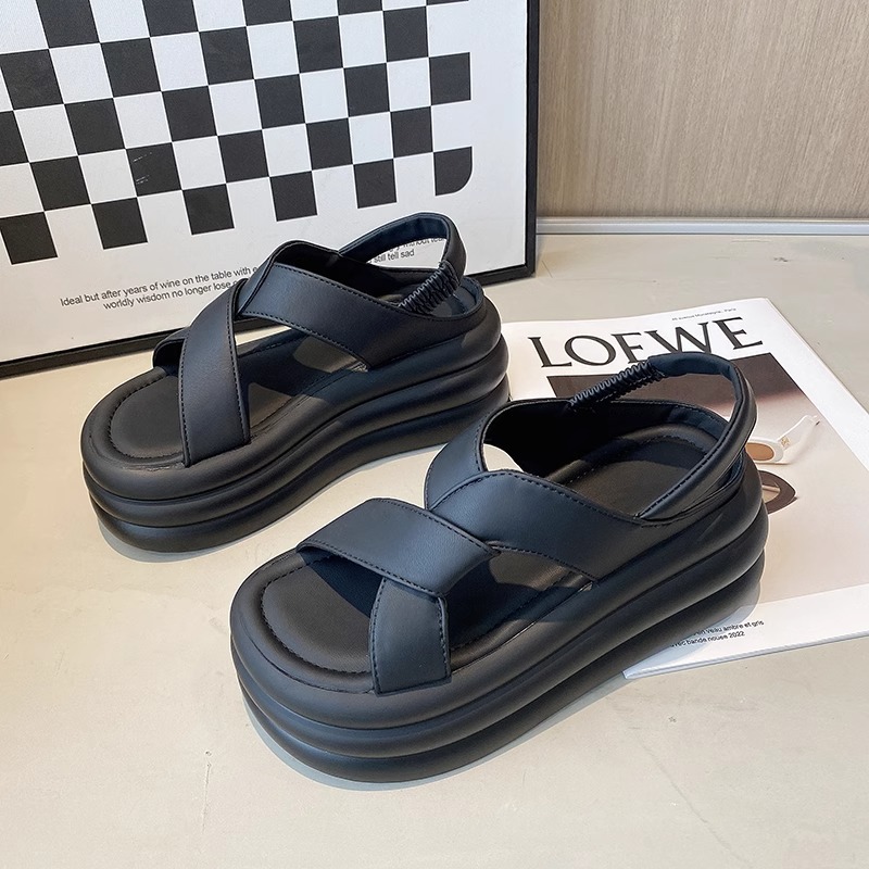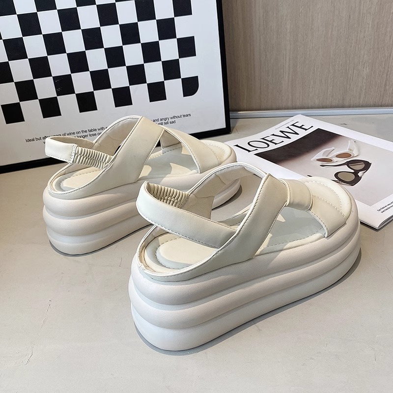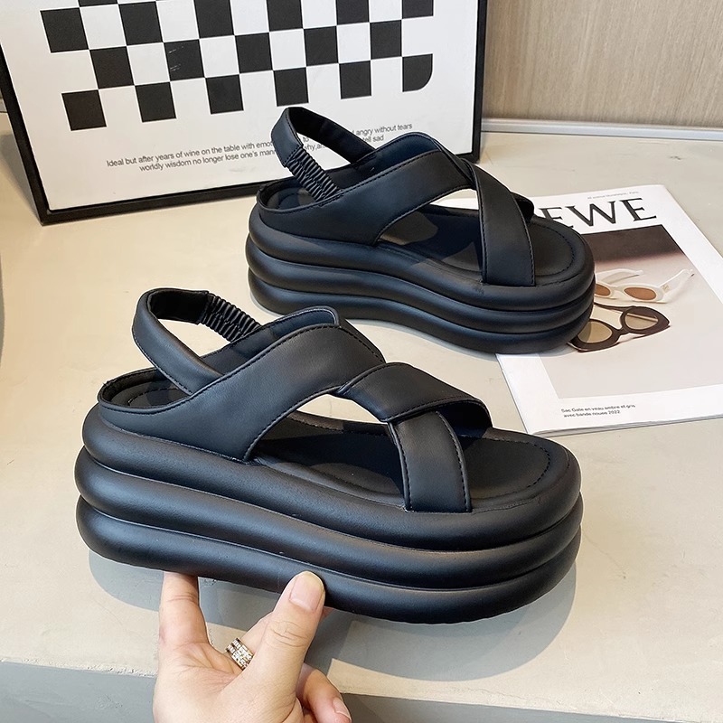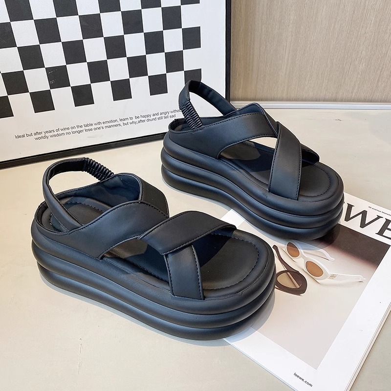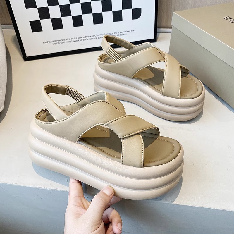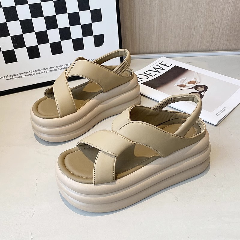 Sandalias romanas para mujeres 2025 verano nuevo estilo de muffin de fondo grueso con altura de moda con falda temperamento universal zapatos de playa
