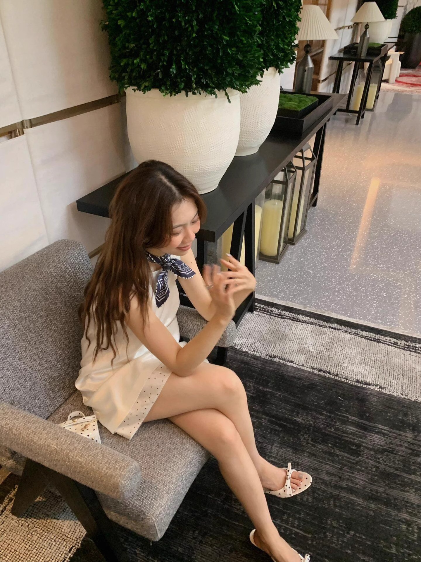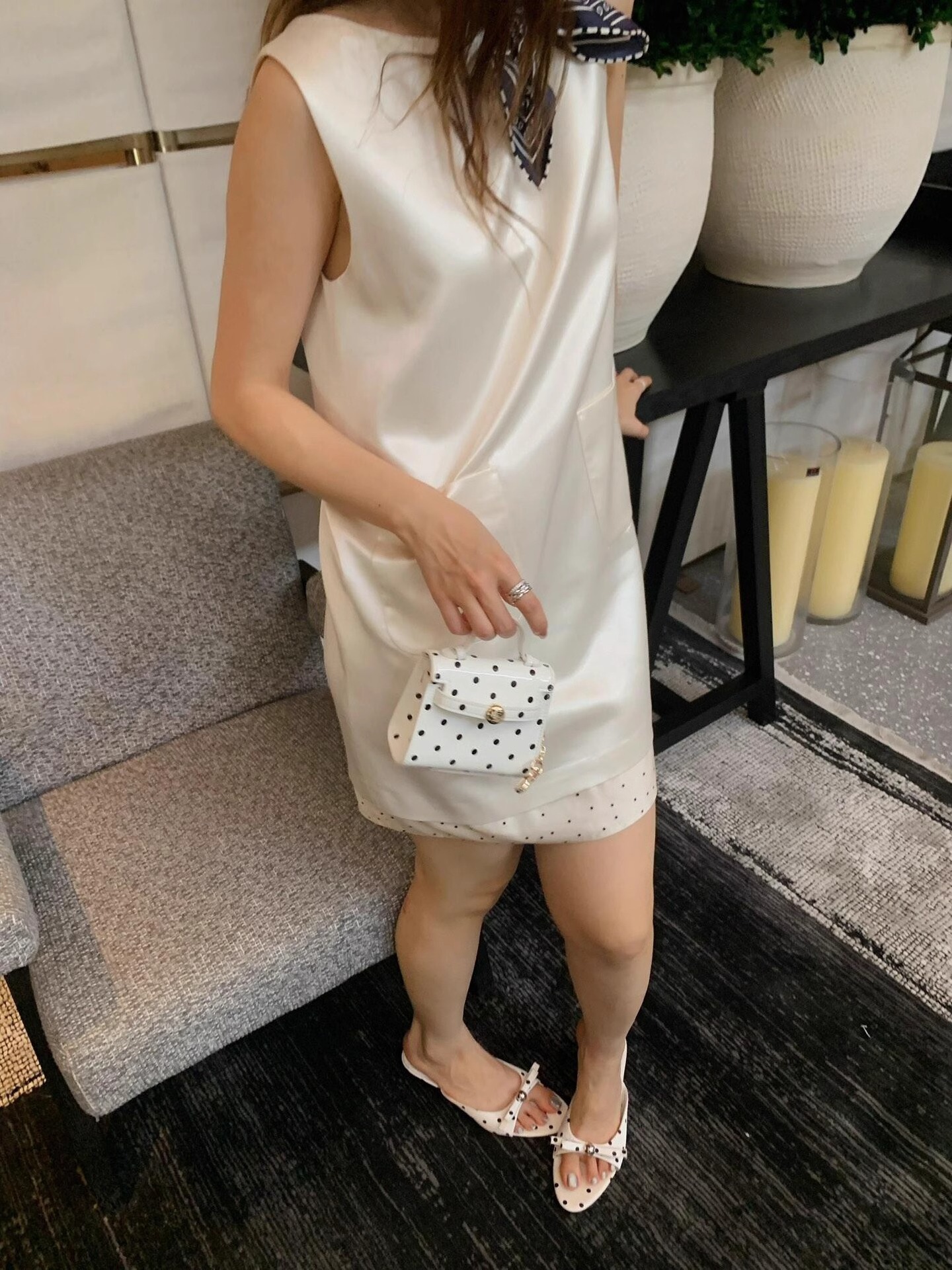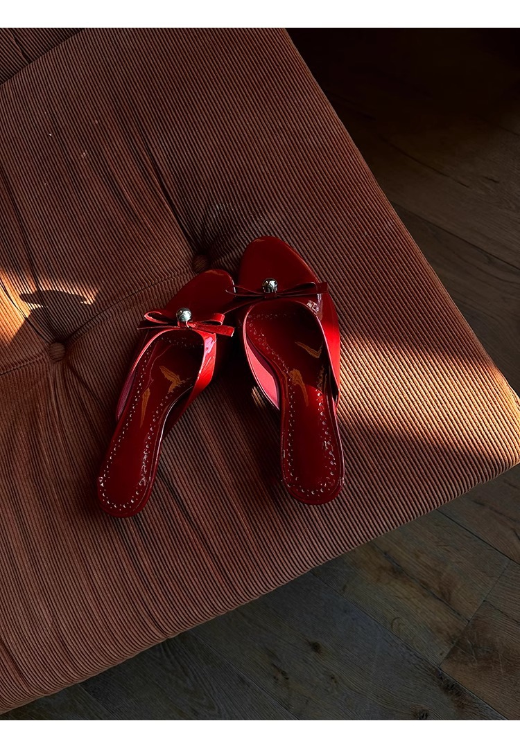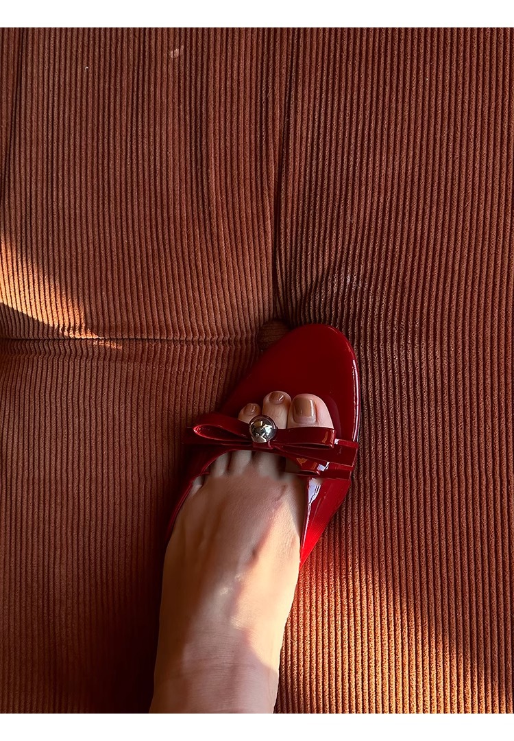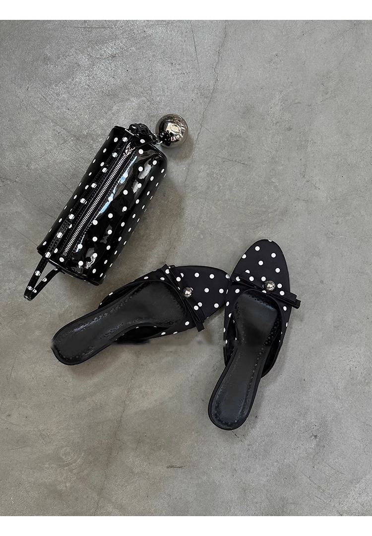 Versión plana ~ Zapatos de mujer de moda Bunan Diseño de nicho Bowknot Gato con zapatillas Nueva sandalias de punta abierta de lunares de perlas