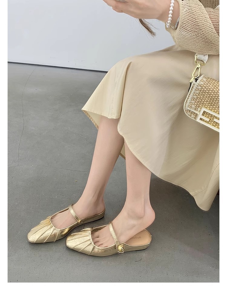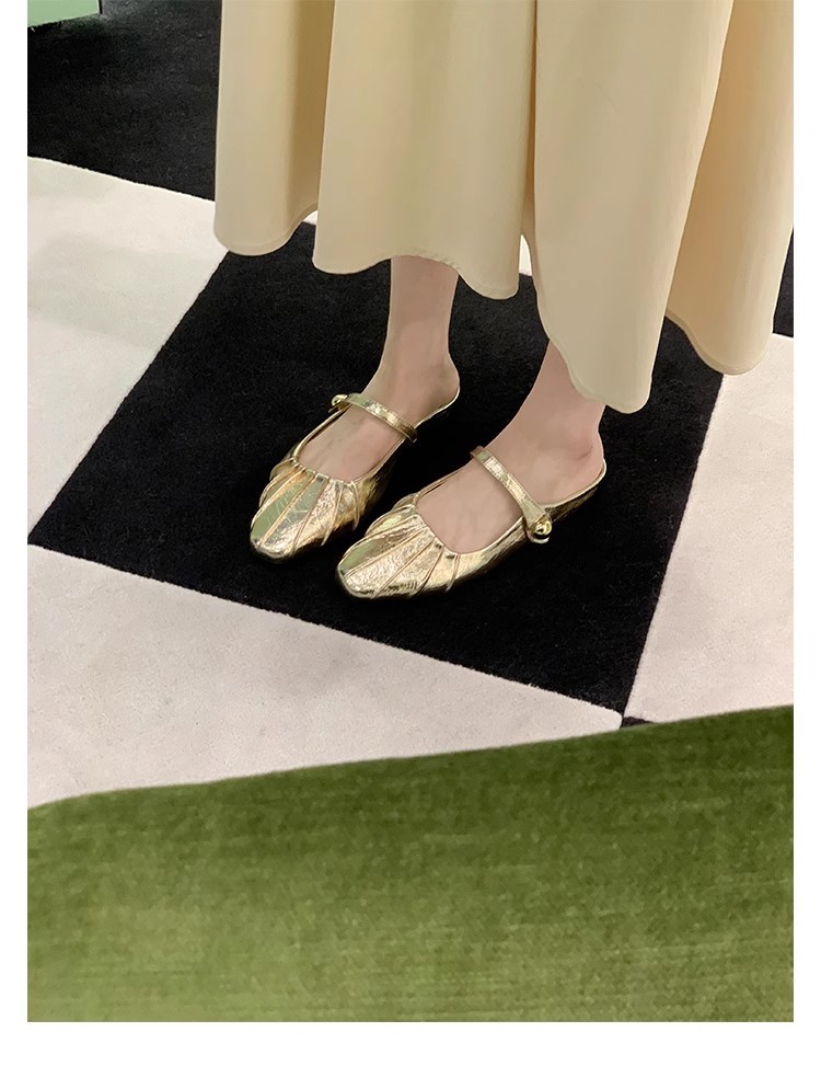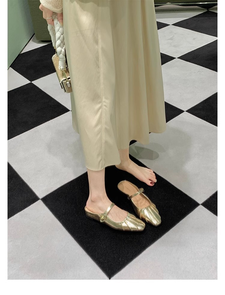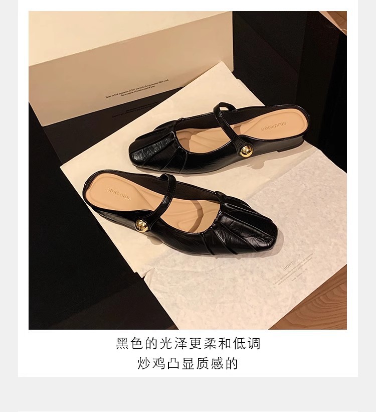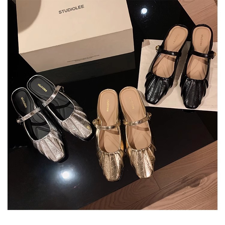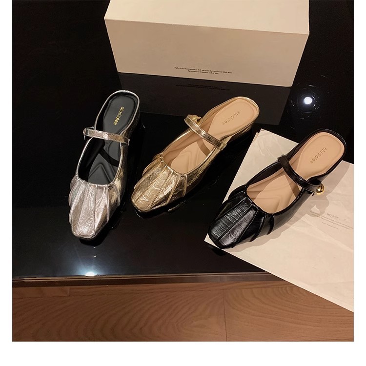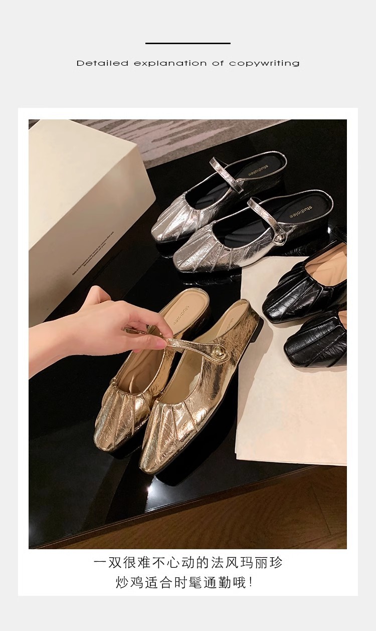 Grape Mom Summer Nuevo temperamento pequeño pliegue de cabeza cuadrada con boca poco profunda Mary Jane Baotou media pantuflas mujeres verano
