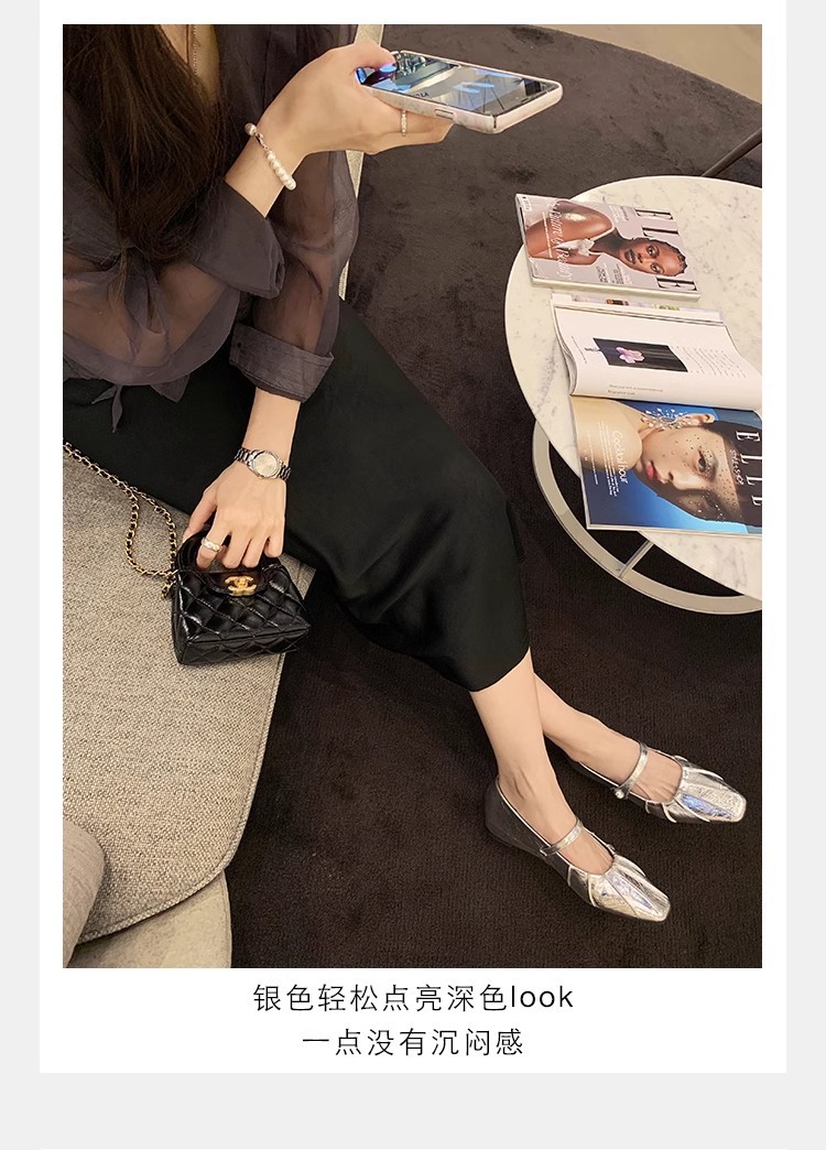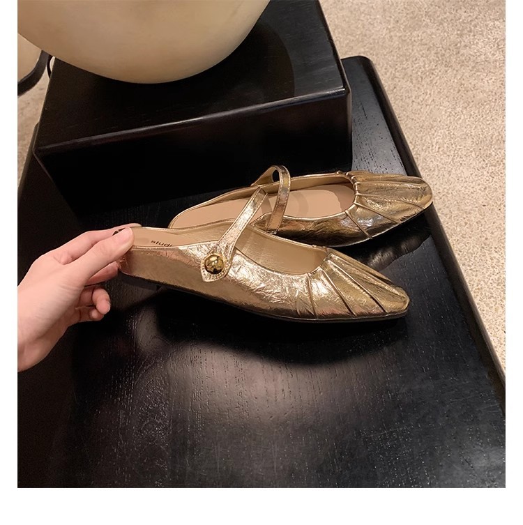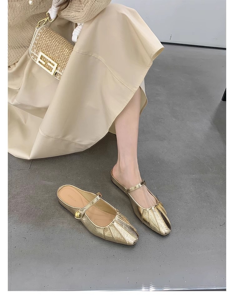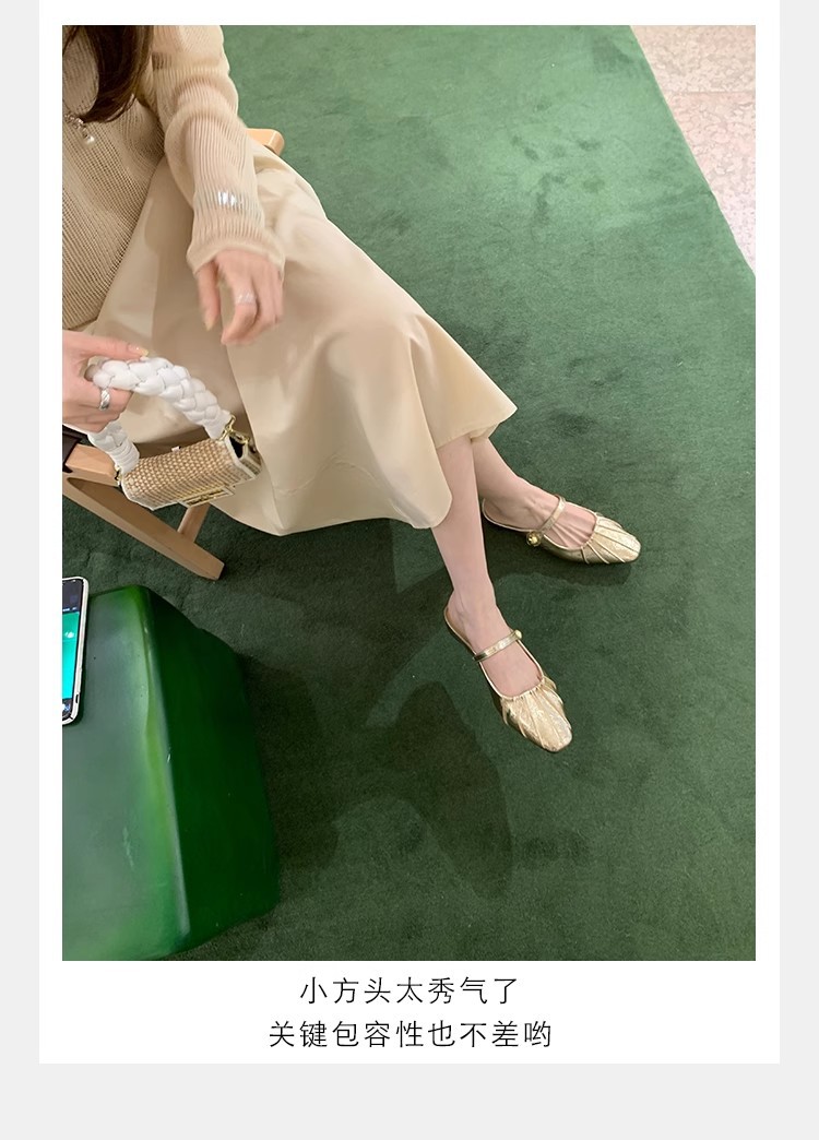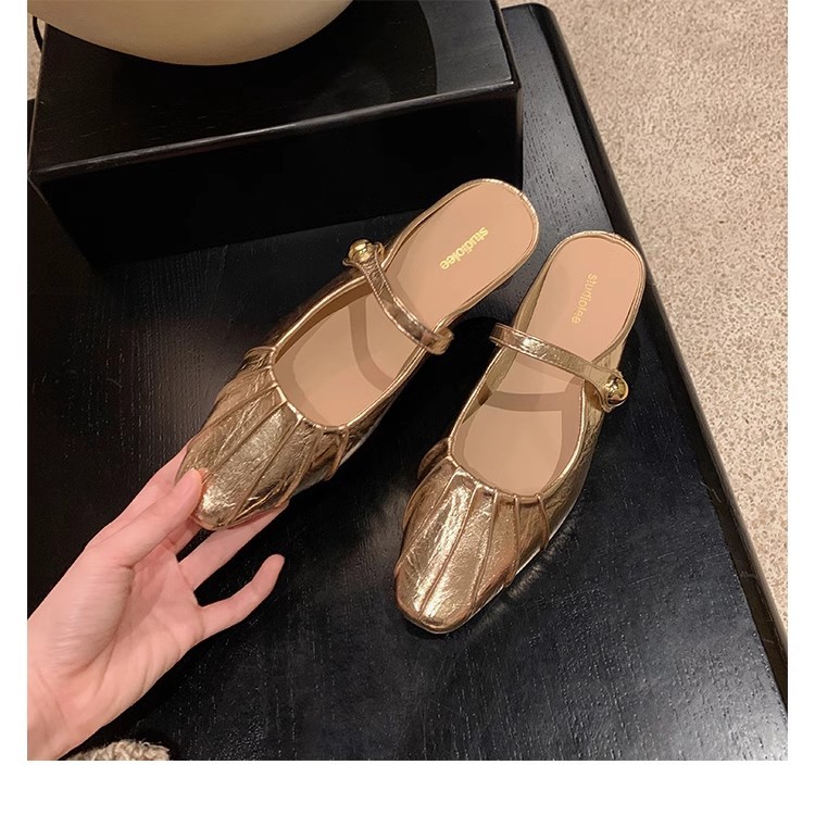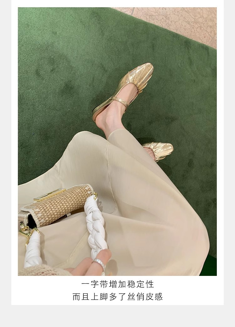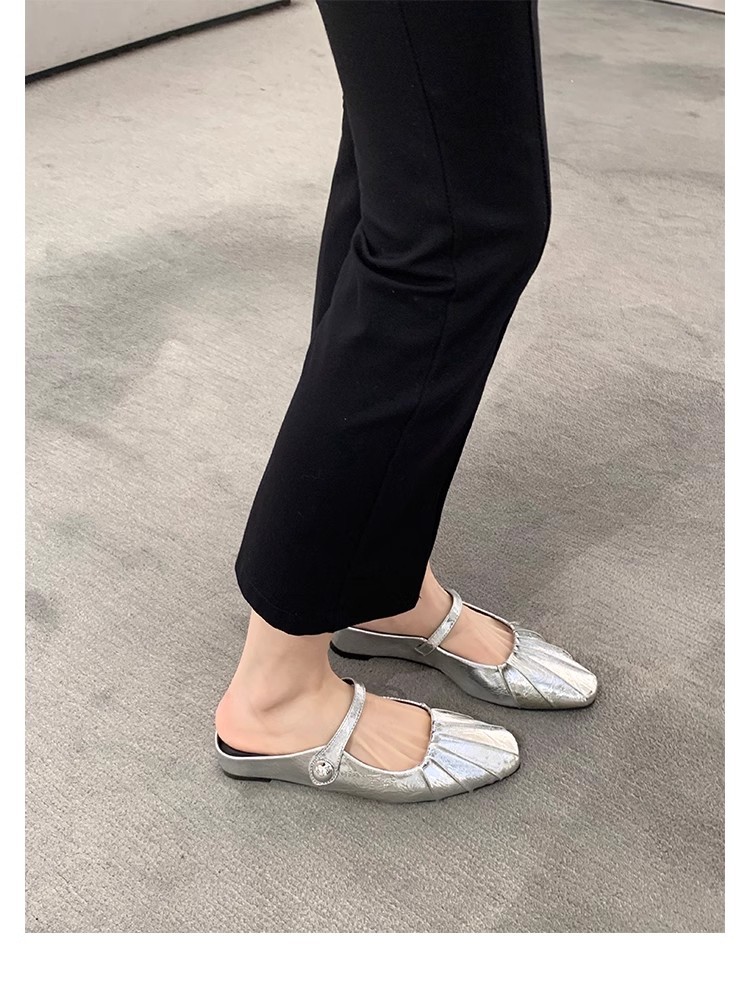 Grape Mom Summer Nuevo temperamento pequeño pliegue de cabeza cuadrada con boca poco profunda Mary Jane Baotou media pantuflas mujeres verano