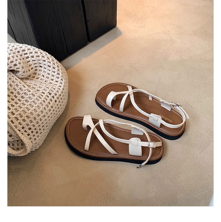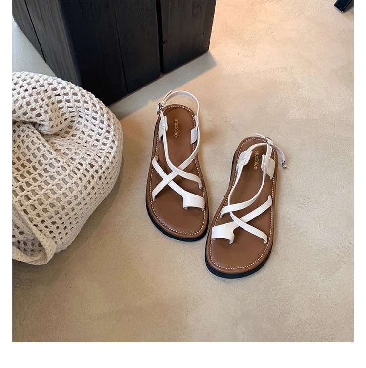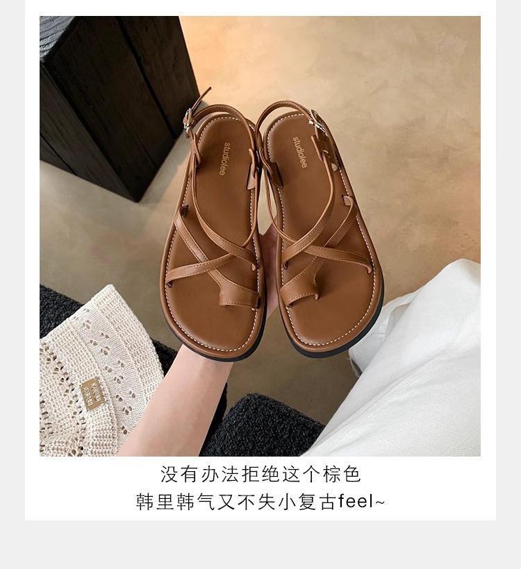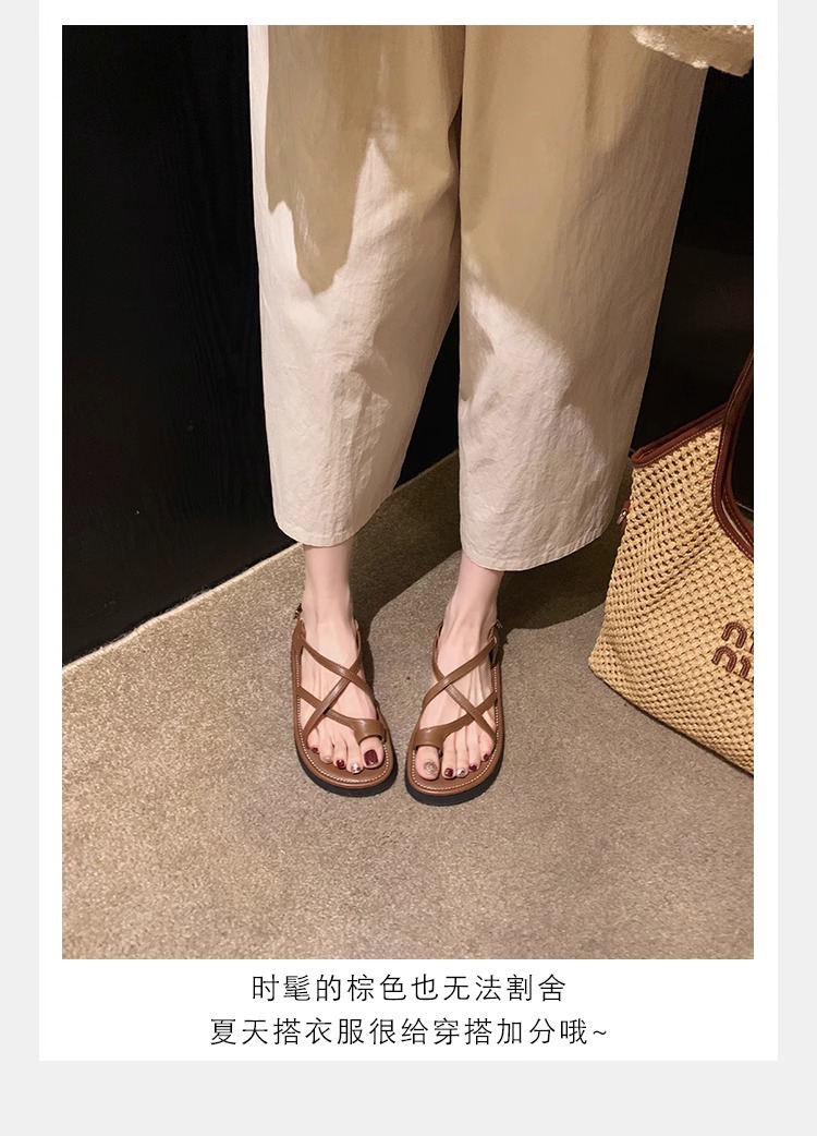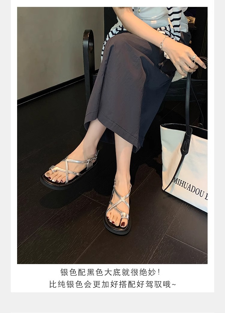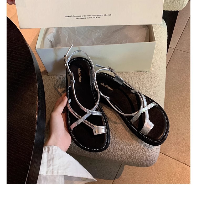 Grape Mom studiolee hebilla cruzada de todo fósforo, suela suave, sandalias de plataforma de vacaciones de estilo romano de nicho para mujer