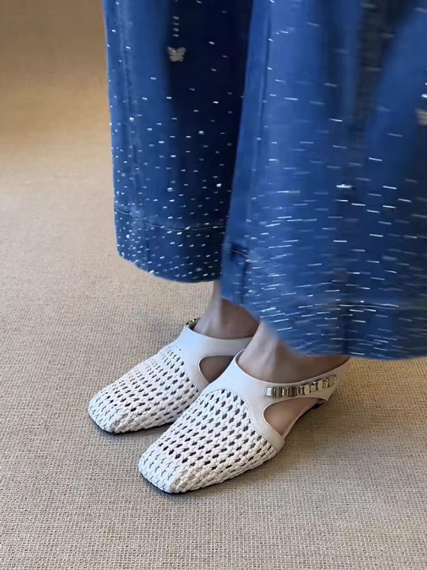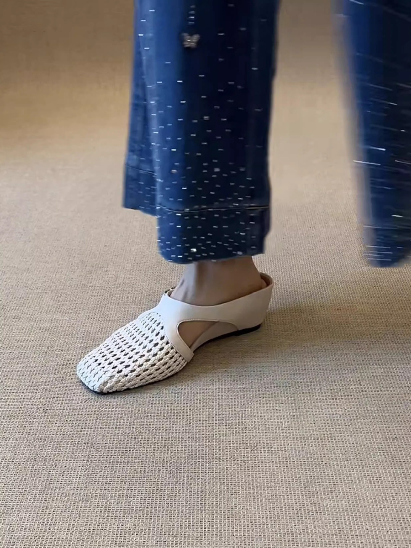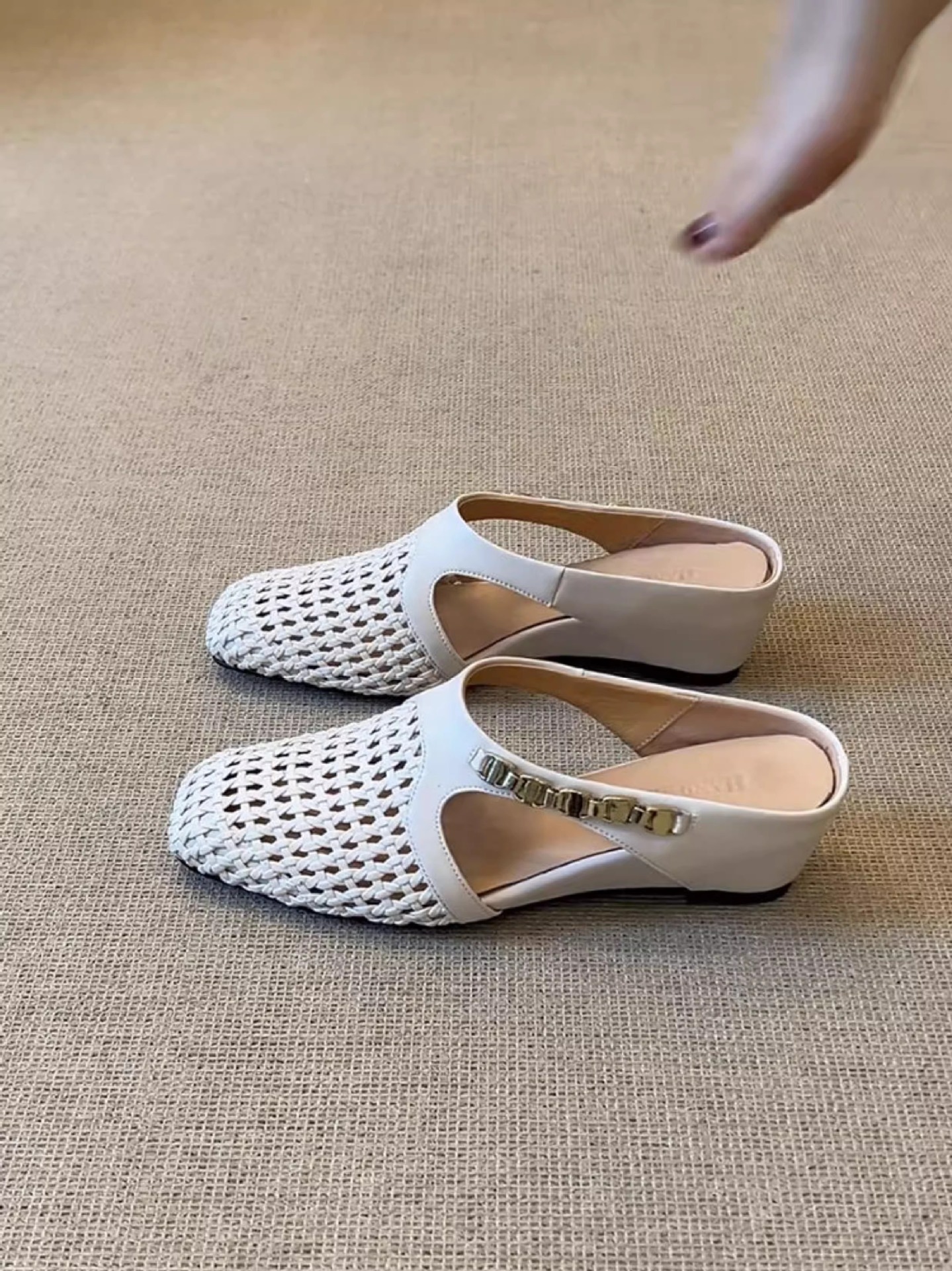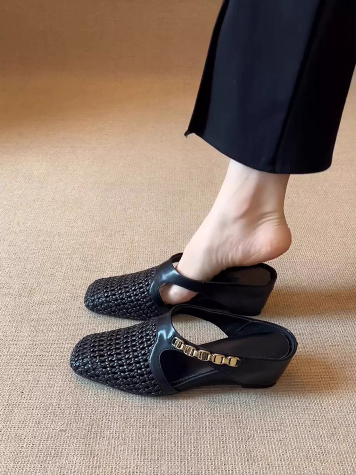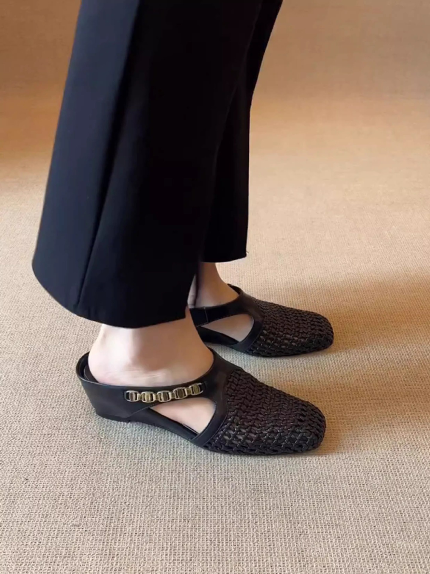 Versión de piel de oveja con aumento interior de 7cm tejido hueca puntera media pantuflas penetrantes exteriores a juego de aire falda sandalias de plataforma mujer
