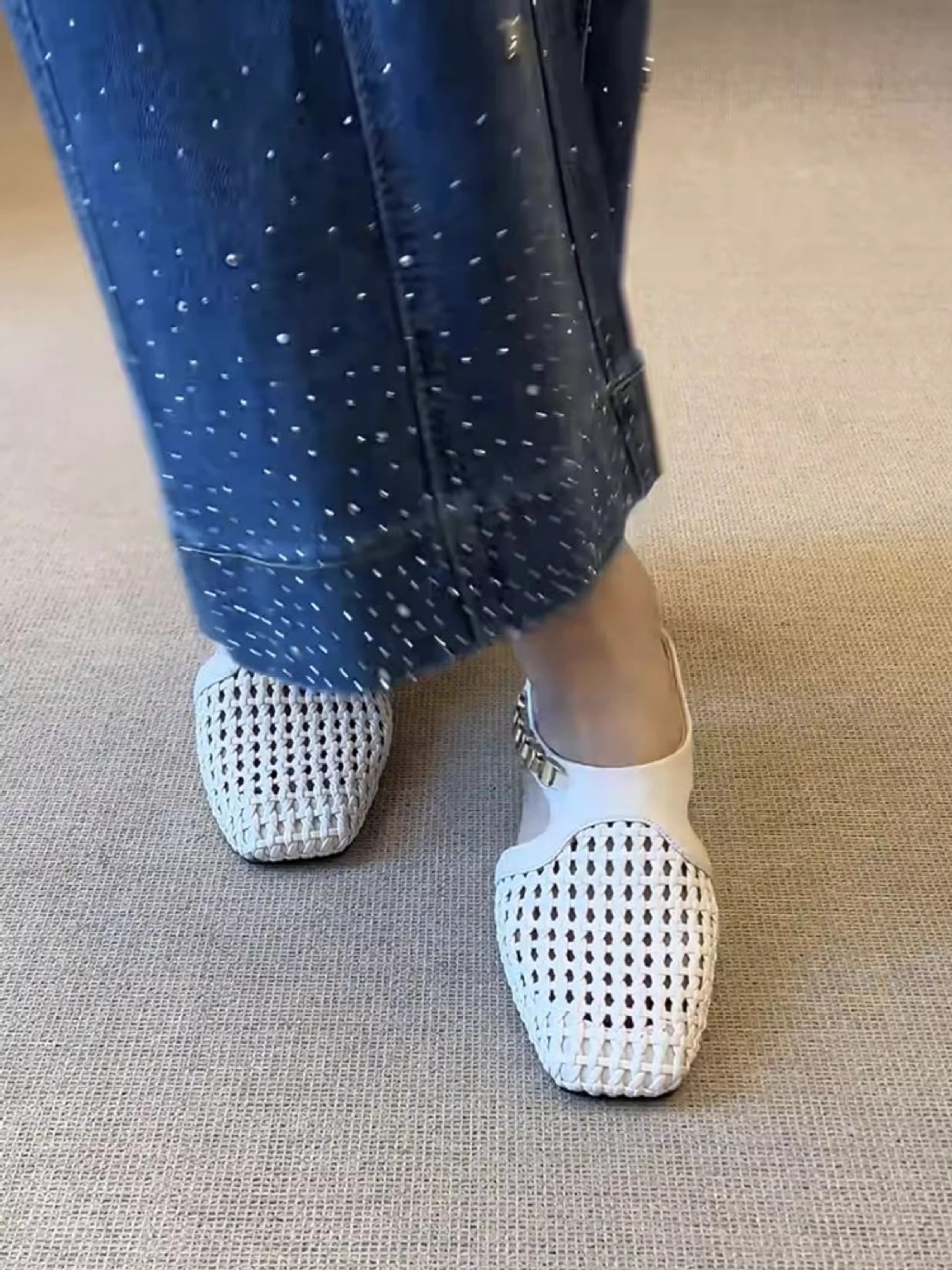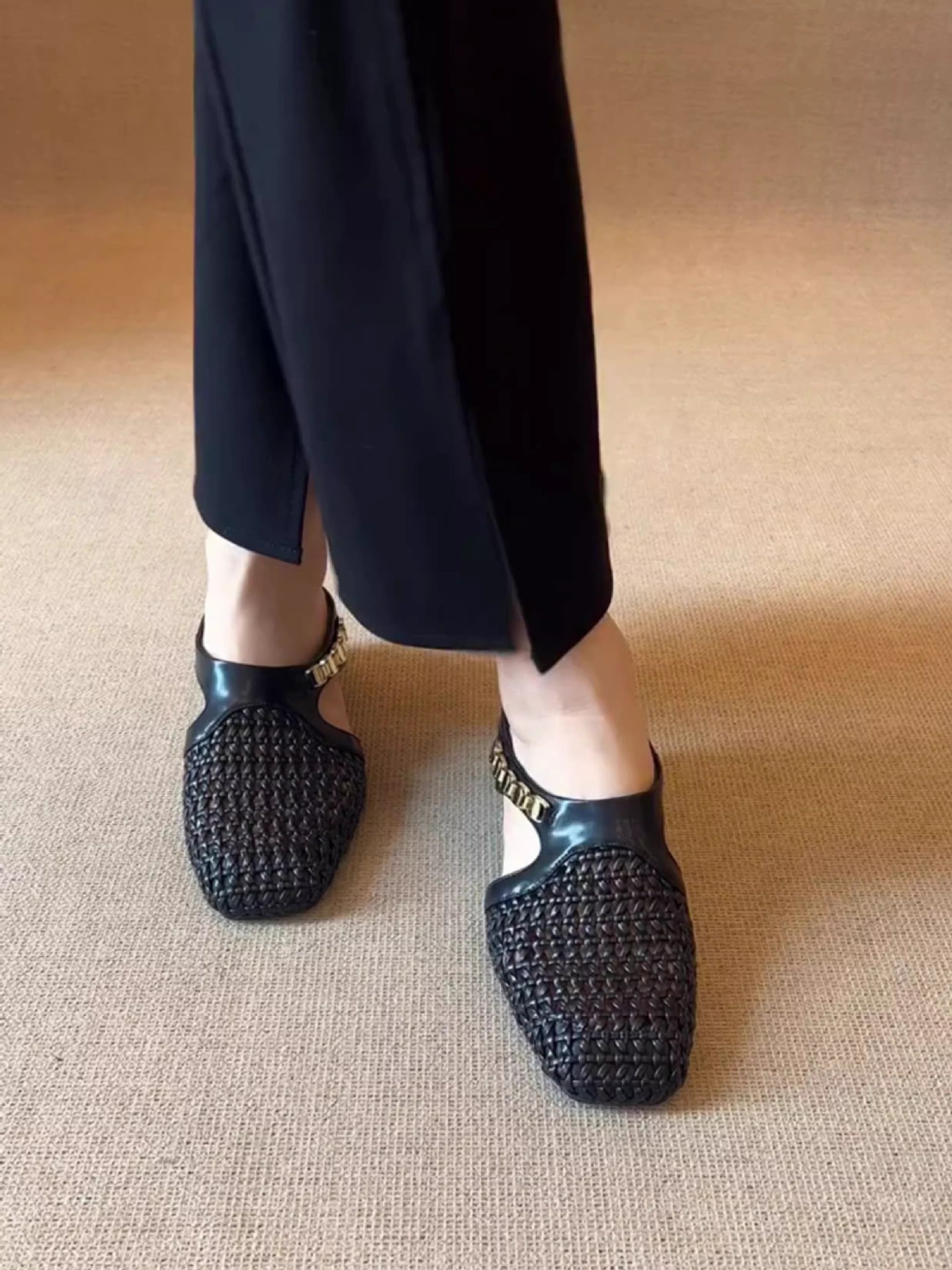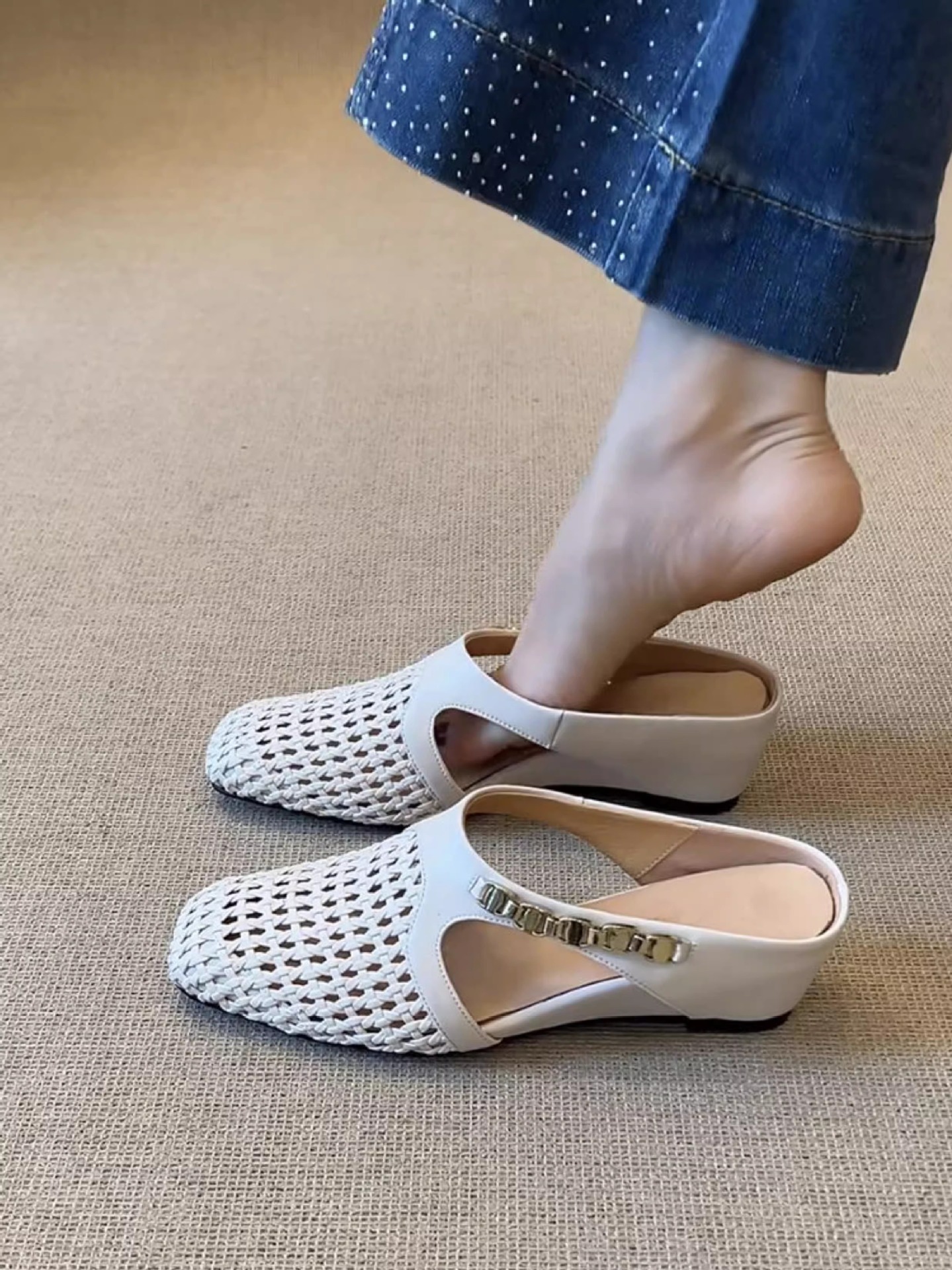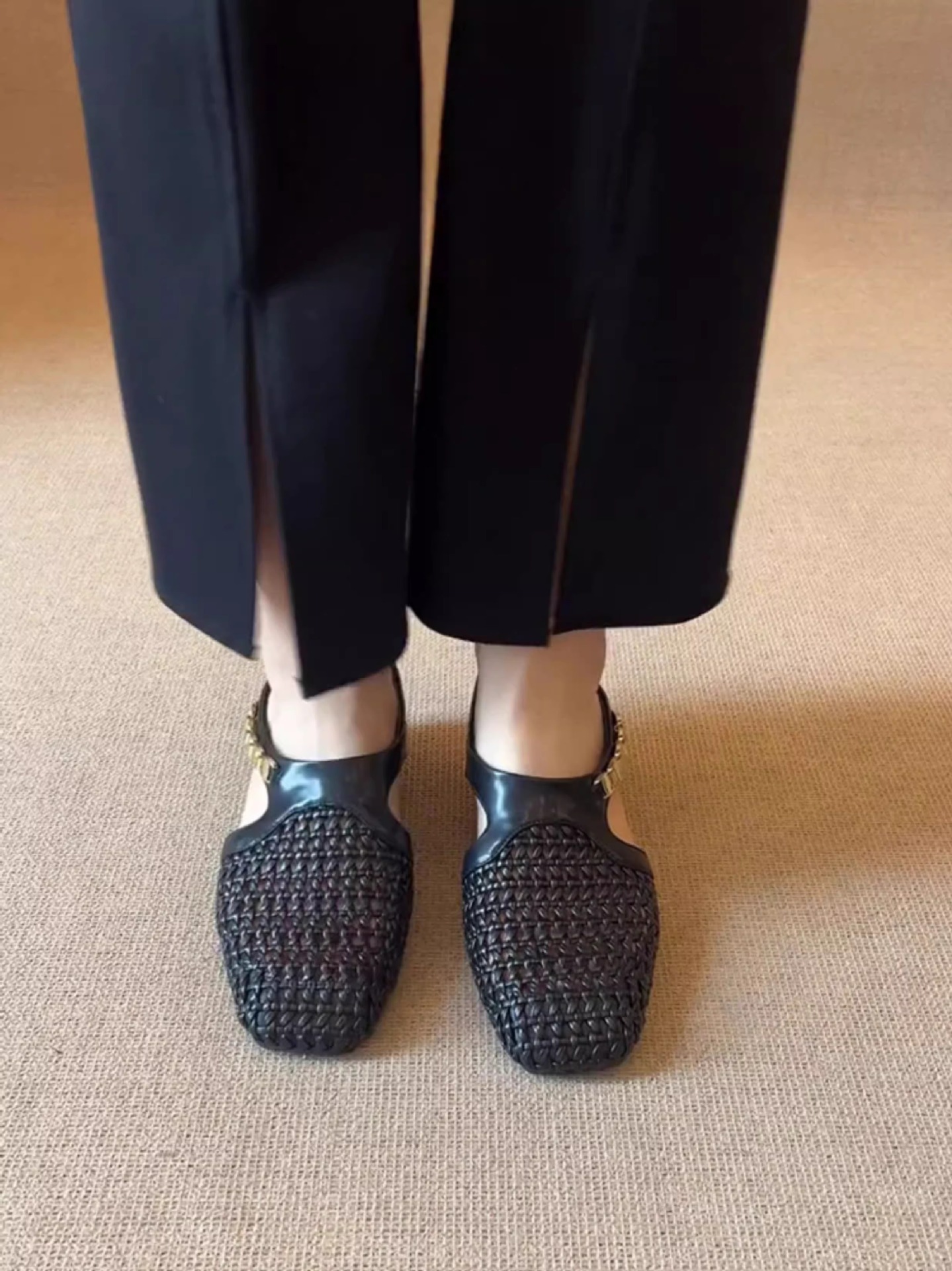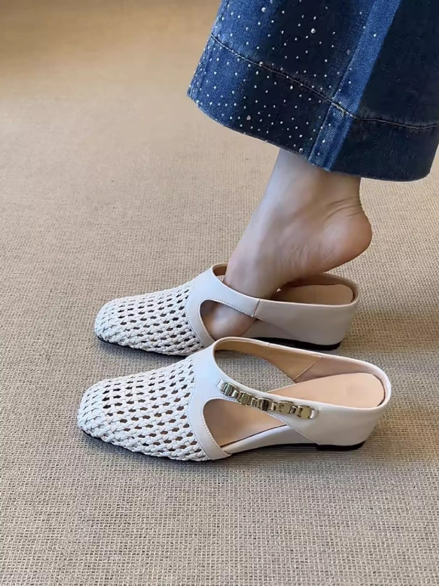 Versión de piel de oveja con aumento interior de 7cm tejido hueca puntera media pantuflas penetrantes exteriores a juego de aire falda sandalias de plataforma mujer